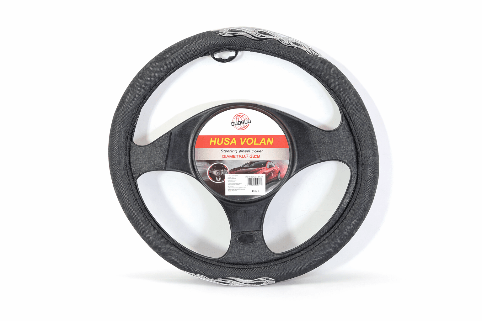 Inserțiile decorative adaugă un plus de stil interiorului mașinii, fără a compromite funcționalitatea. Husa se montează rapid și se adaptează ușor pe volanele standard, fiind o soluție eficientă pentru protejarea împotriva uzurii și menținerea unui aspect îngrijit.