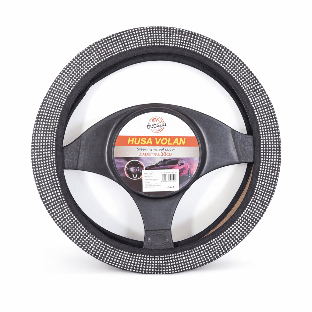 Îmbunătățește aspectul și confortul volanului cu această husă auto de 38 cm, realizată pentru utilizare zilnică și un plus de stil în interiorul mașinii. Designul cu pietre decorative oferă un aspect modern și distinct, evidențiind volanul într-un mod elegant.