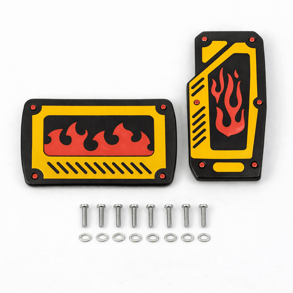 Setul de accesorii pentru pedale auto este proiectat pentru a oferi un plus de control în timpul condusului și pentru a îmbunătăți aspectul interior al mașinii. Designul sport cu model flacără oferă un stil distinct, iar suprafața texturată contribuie la o aderență mai bună în utilizare.