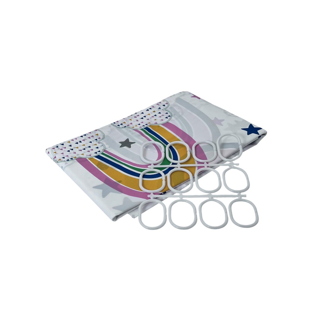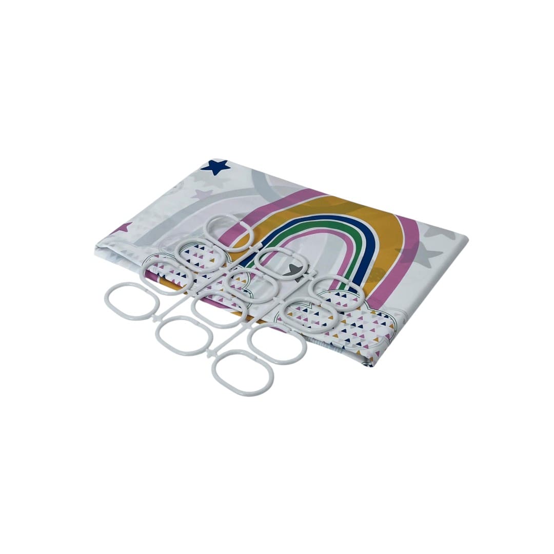 Comandă acum perdeaua de duș PEVA 180×180 cm cu design curcubeu și stele și transformă baia într-un spațiu vesel, modern și protejat împotriva stropilor!