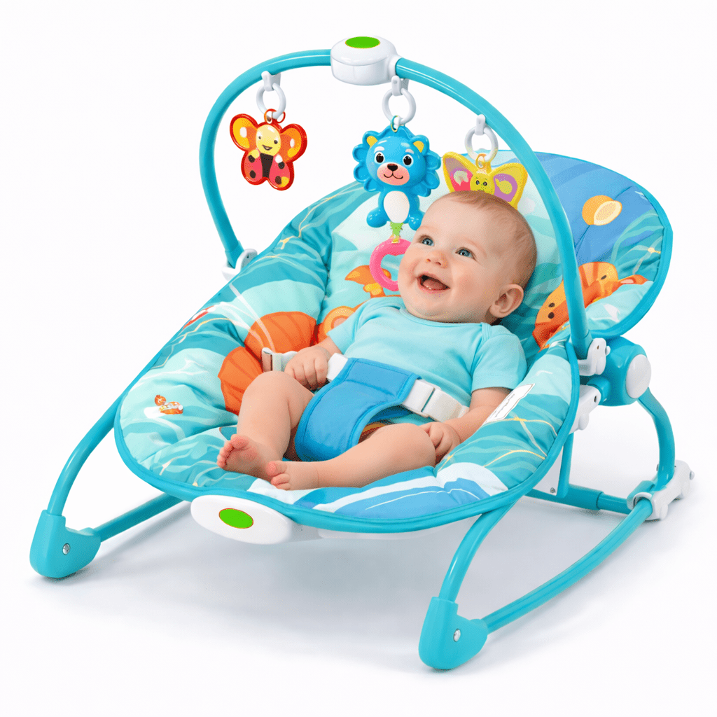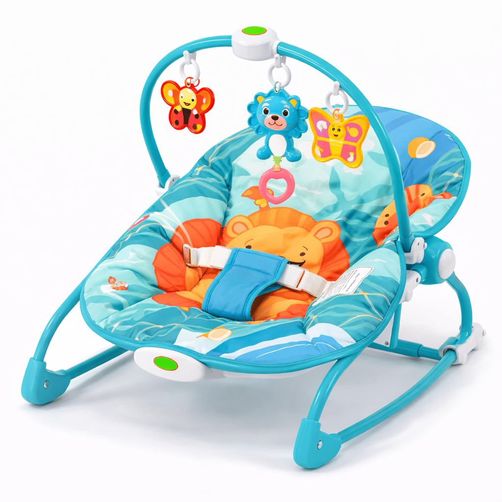 Balansoarul muzical pentru bebeluși este conceput pentru a oferi un spațiu confortabil în care copilul se poate relaxa, juca și observa mediul din jur. Sistemul de legănare contribuie la calmarea naturală a bebelușului, iar arcada cu jucării colorate stimulează atenția și curiozitatea în timpul momentelor de joacă.