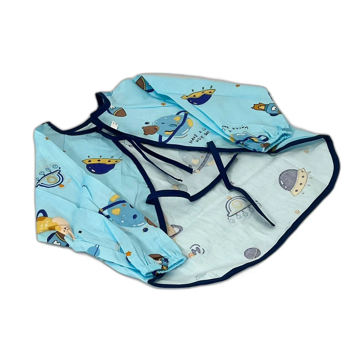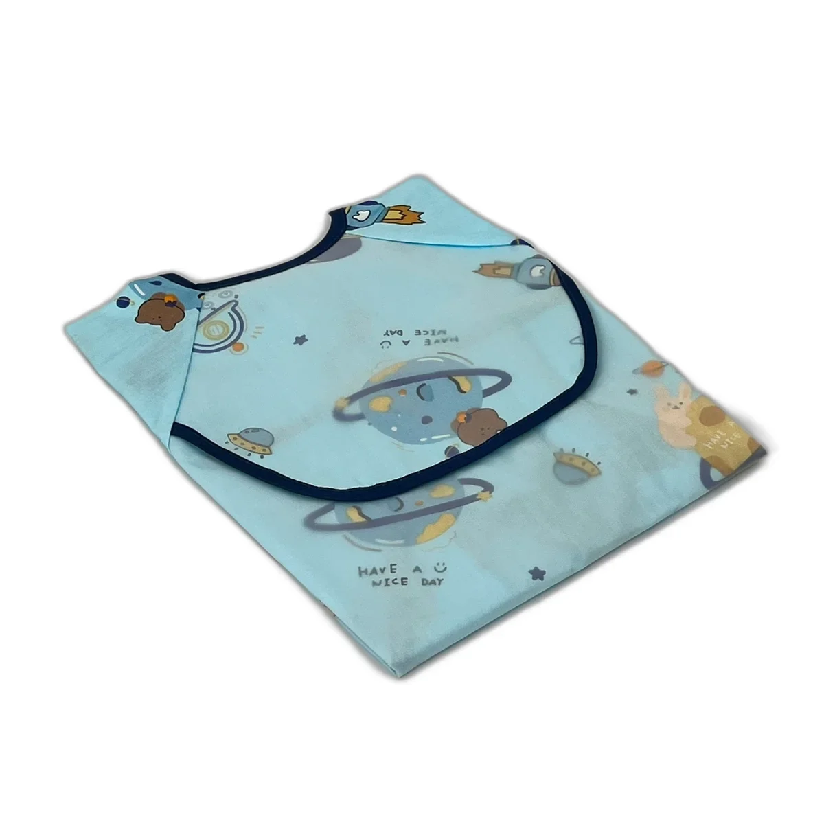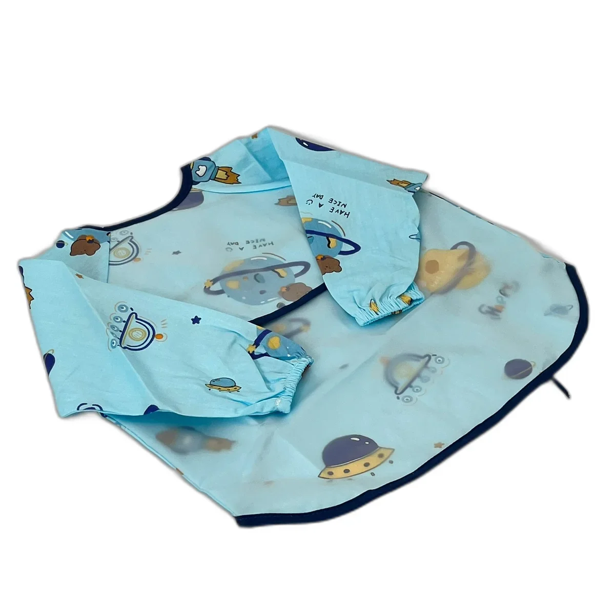 Asigură protecția completă a hainelor copilului tău în timpul meselor și activităților murdare cu baveta impermeabilă cu mâneci și imprimeu spațial. Materialul rezistent la apă previne pătrunderea lichidelor, iar designul cu mâneci oferă acoperire totală, păstrând copilul curat și confortabil.