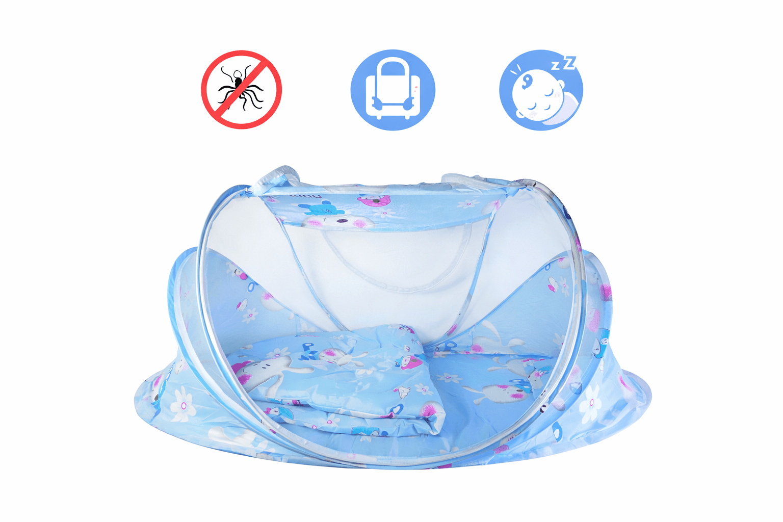Patul portabil pentru bebeluși oferă un spațiu sigur și confortabil pentru odihna copilului, fiind ideal atât pentru utilizare acasă, cât și în timpul deplasărilor. Designul tip cort este prevăzut cu plasă de protecție care ajută la menținerea unui mediu protejat în timpul somnului.