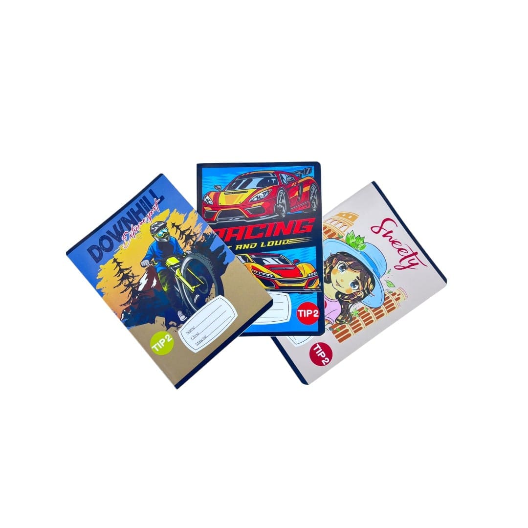 Caietul Tip 2 A5 cu 24 de file este special conceput pentru elevii din ciclul primar, ajutându-i să își perfecționeze scrisul după etapa de început. Structura liniaturii este adaptată pentru a susține tranziția către scrisul ordonat și cursiv, iar coperta colorată, disponibilă în modele variate, face caietul atractiv pentru cei mici.