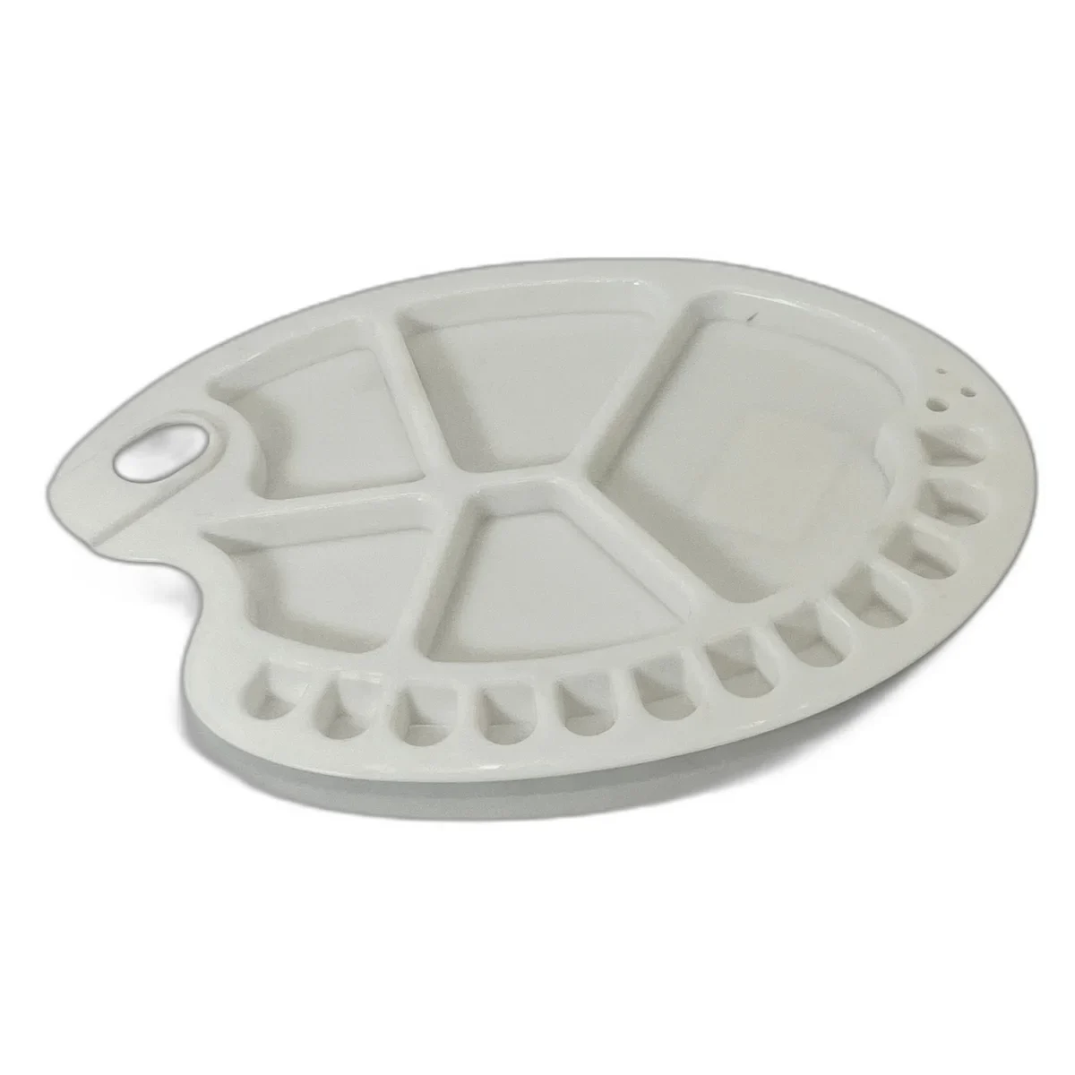 Descopera aceasta paleta practica din plastic, echipata cu 17 compartimente special concepute pentru a facilita amestecul culorilor intr-un mod ordonat si eficient. Perfecta pentru pictura in acrilice, uleiuri sau acuarele, aceasta paleta ajuta artistii sa creeze nuante precise cu usurinta.