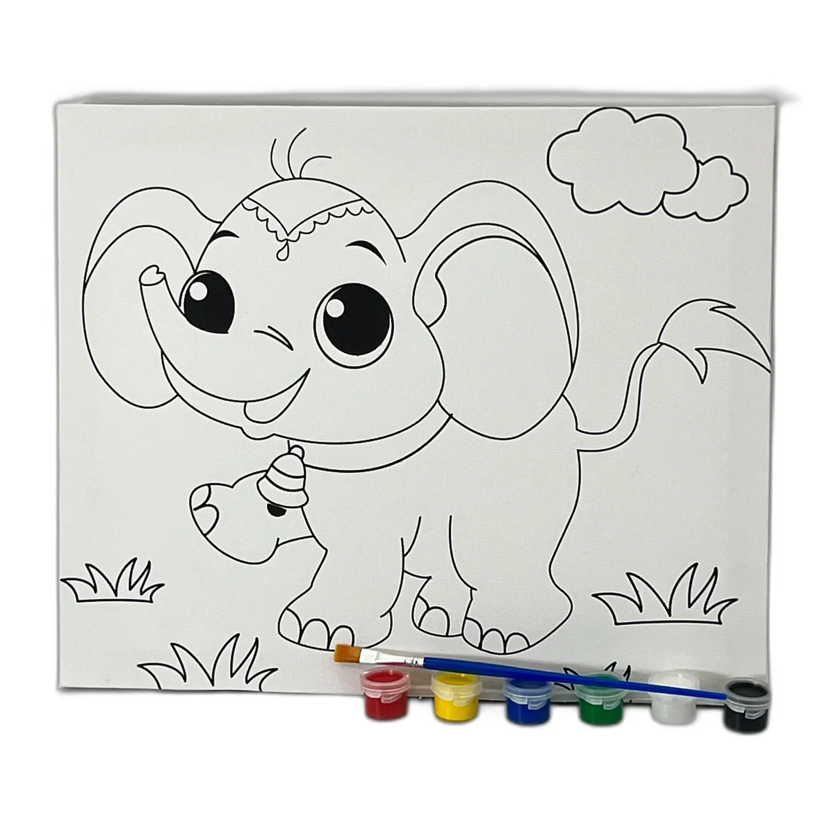Comandă acum Setul de Pictură pentru Copii pe Pânză, cu model elefănțel, și oferă-i micuțului tău o experiență artistică distractivă și educativă, gata de pus în practică imediat!