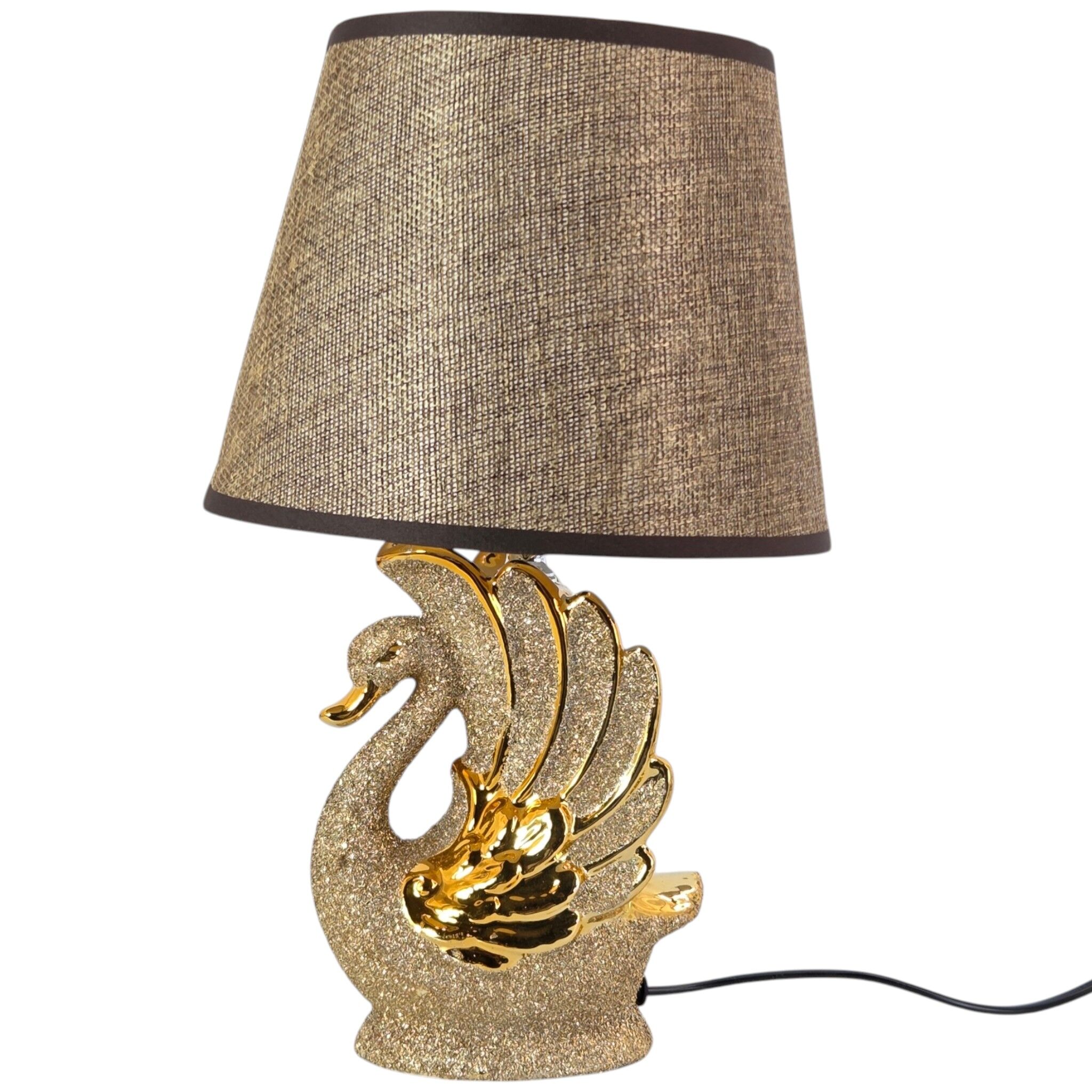 Adaugă un element decorativ elegant și funcțional în spațiul tău cu această lampă de masă cu design tip lebădă aurie. Baza sculptată oferă un aspect vizual distinct, iar abajurul textil contribuie la difuzarea uniformă a luminii, creând o atmosferă plăcută în orice încăpere.