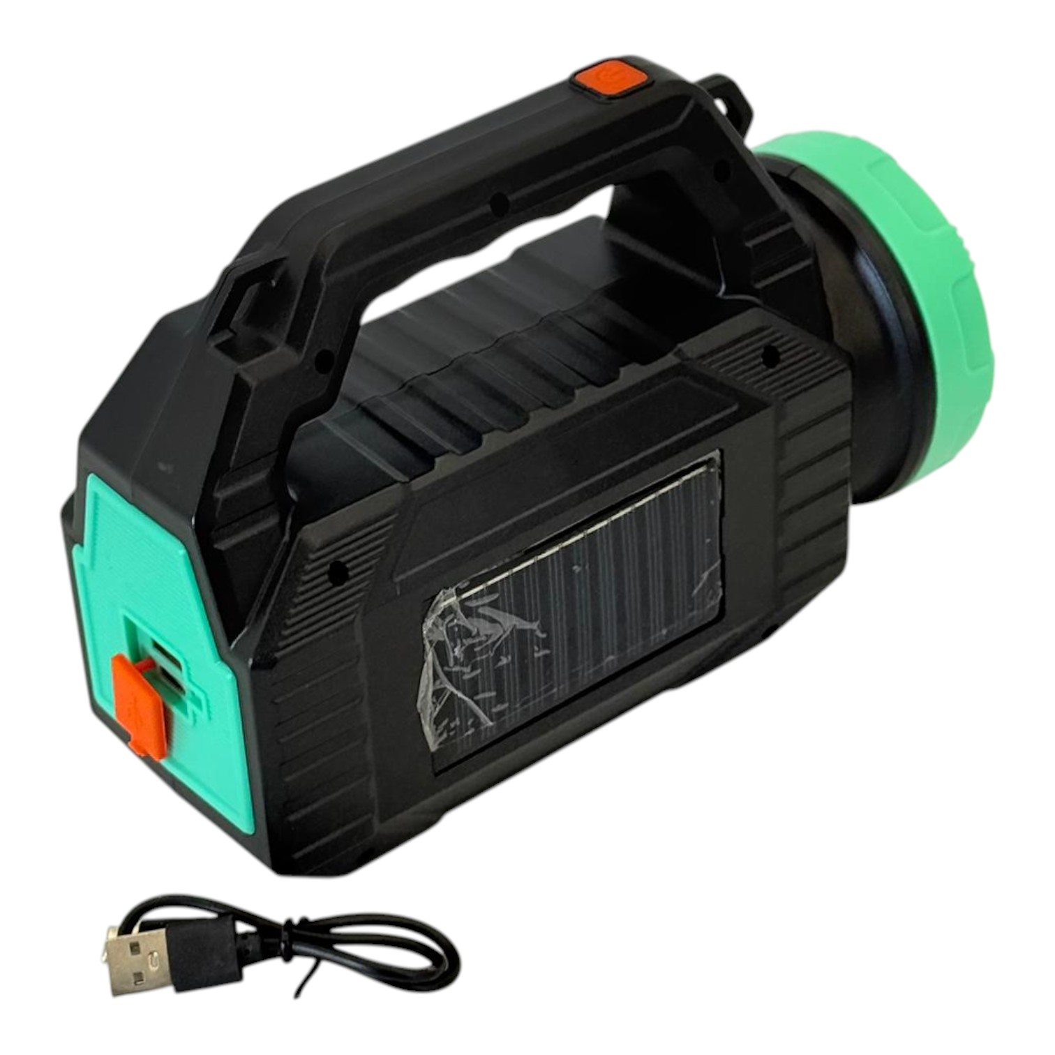 Lanterna include un panou solar care permite încărcarea direct la lumină, iar cablul USB îți oferă o metodă suplimentară de alimentare. Este practică pentru camping, drumeții sau pene de curent. Carcasa rezistentă asigură o utilizare îndelungată, iar forma este concepută pentru manipulare rapidă și sigură.