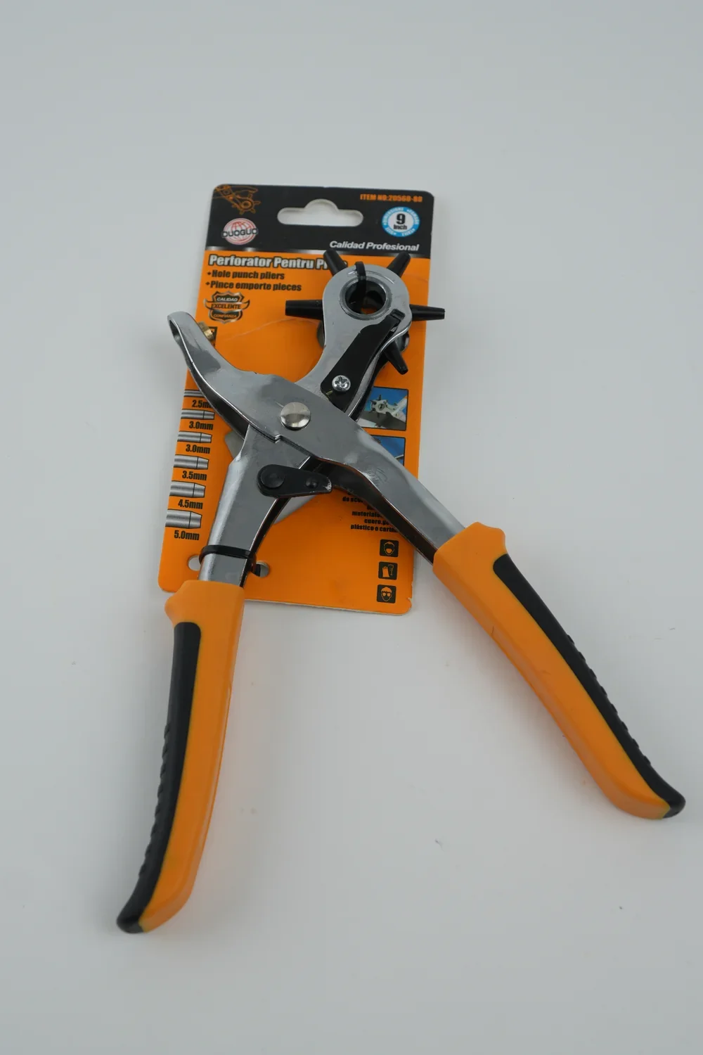 Adaugă precizie și ușurință în lucrările tale de marochinărie cu perforatorul pentru piele, conceput pentru a realiza găuri curate și uniforme în curele, brățări sau alte accesorii. Fabricat din oțel rezistent și prevăzut cu mecanism rotativ, îți oferă multiple dimensiuni de găuri într-o singură unealtă practică.