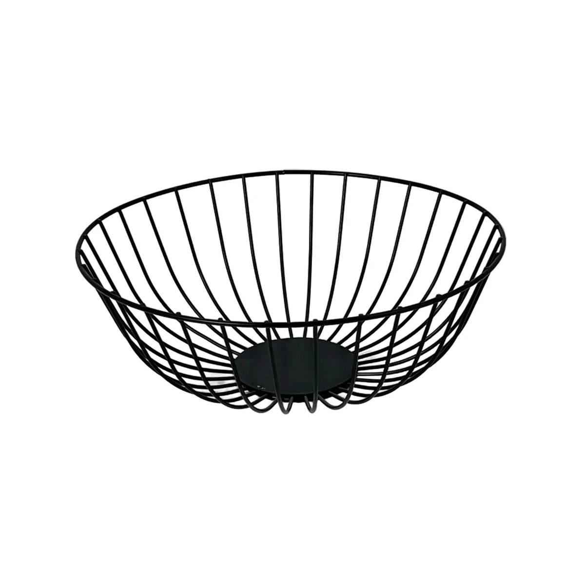 Cos decorativ din sarma metalica neagra, forma rotunda. Potrivit pentru fructe, decoruri moderne, chei sau obiecte mici.