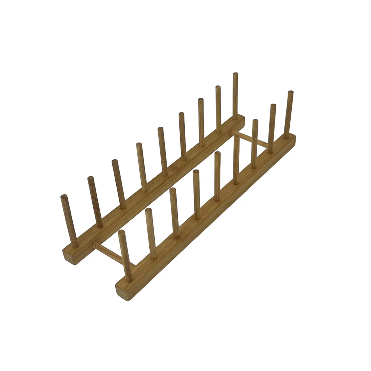 Organizator vertical din bambus cu 2 nivele, ideal pentru depozitarea farfuriilor, tavilor sau capace in dulapuri sau pe blat.