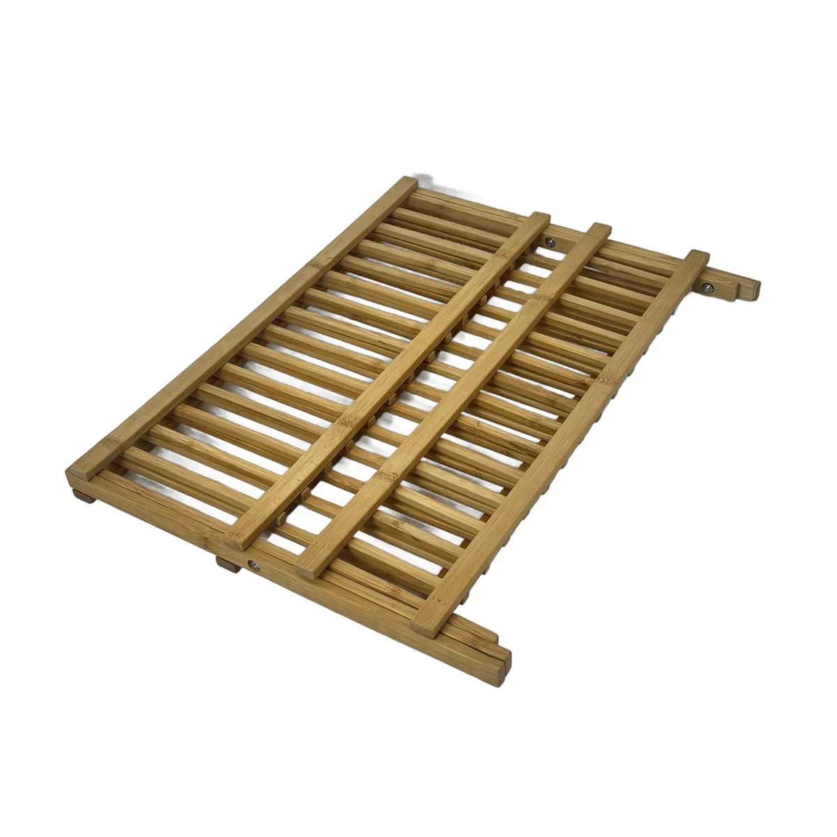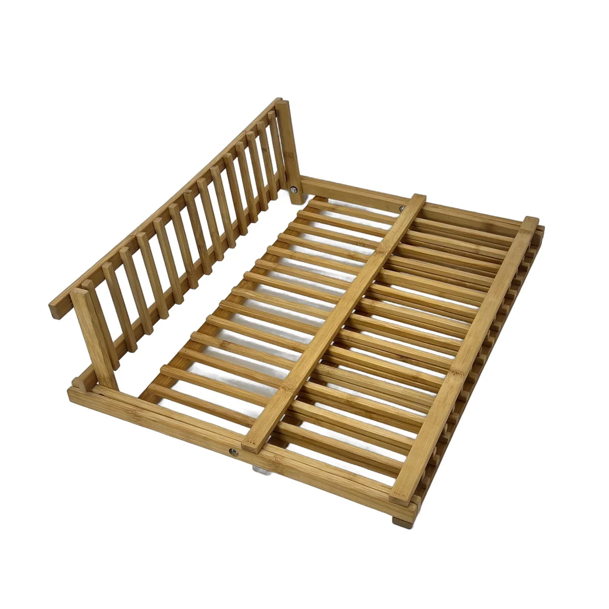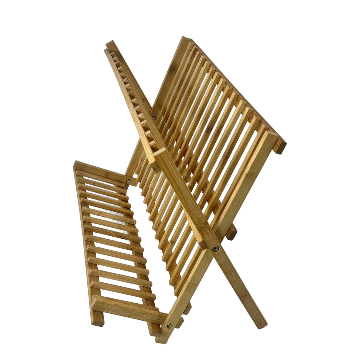 Suport pliabil din bambus natural, cu 2 niveluri pentru farfurii si cani. Ideal pentru uscarea vaselor sau organizare in bucatarie.