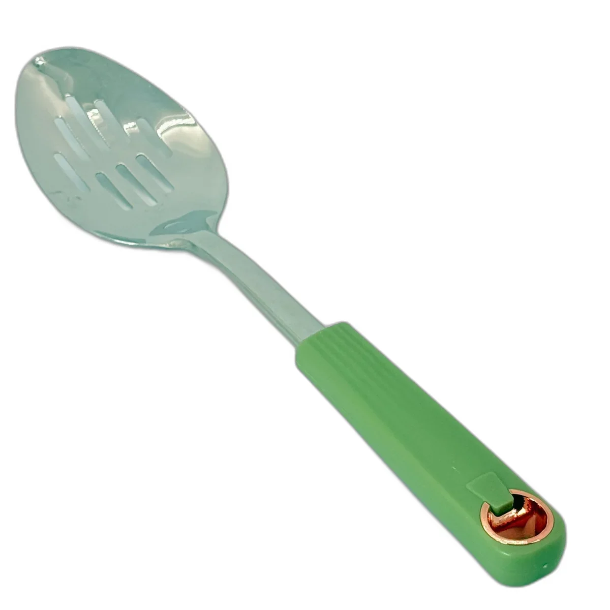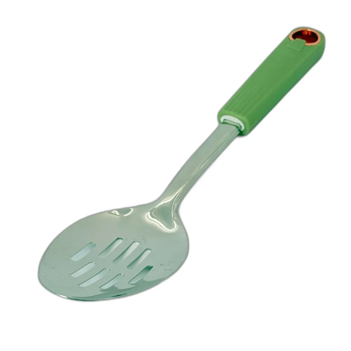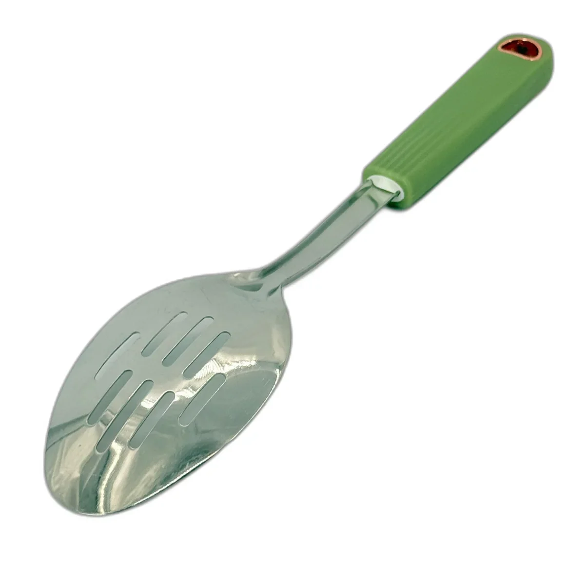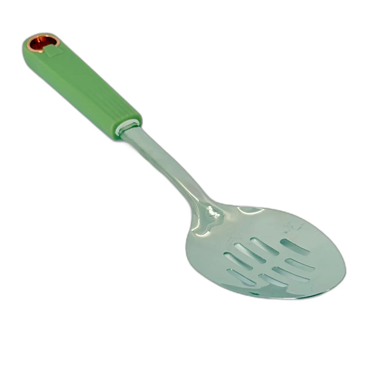 Comandă acum Lingura Perforată de Bucătărie din Inox cu Mâner Ergonomic Verde și bucură-te de o ustensilă rezistentă, practică și esențială pentru servirea rapidă și sigură a preparatelor!