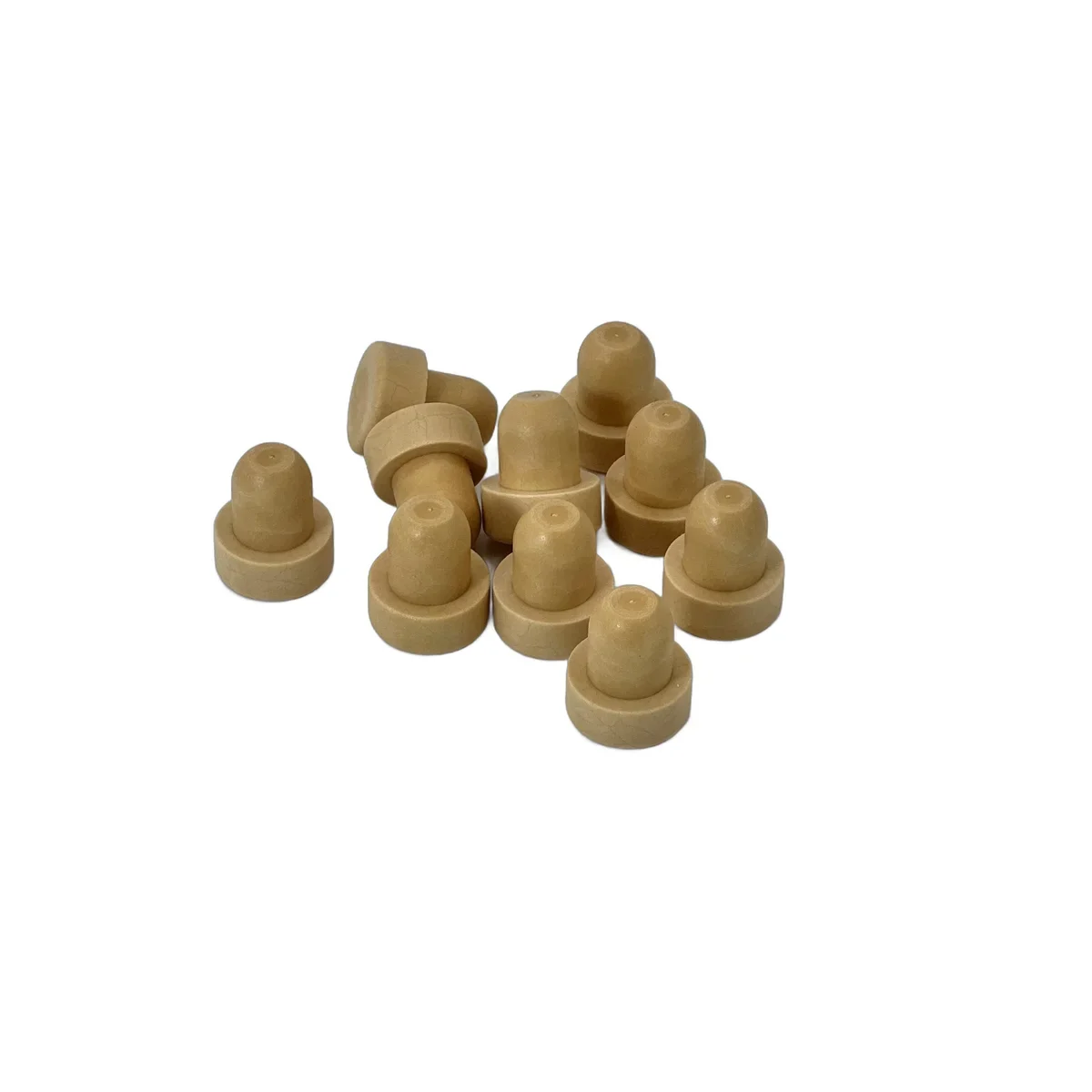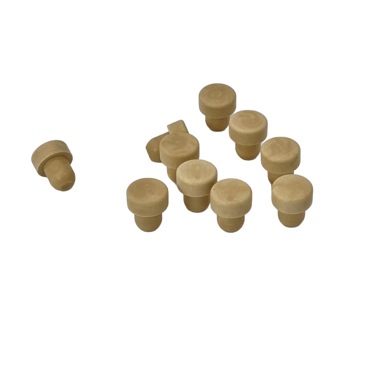 Set de 10 dopuri din lemn natur, ideale pentru inchiderea sticlelor de lichior, vin, otet sau ulei. Etansare clasica, reutilizabila si decorativa.