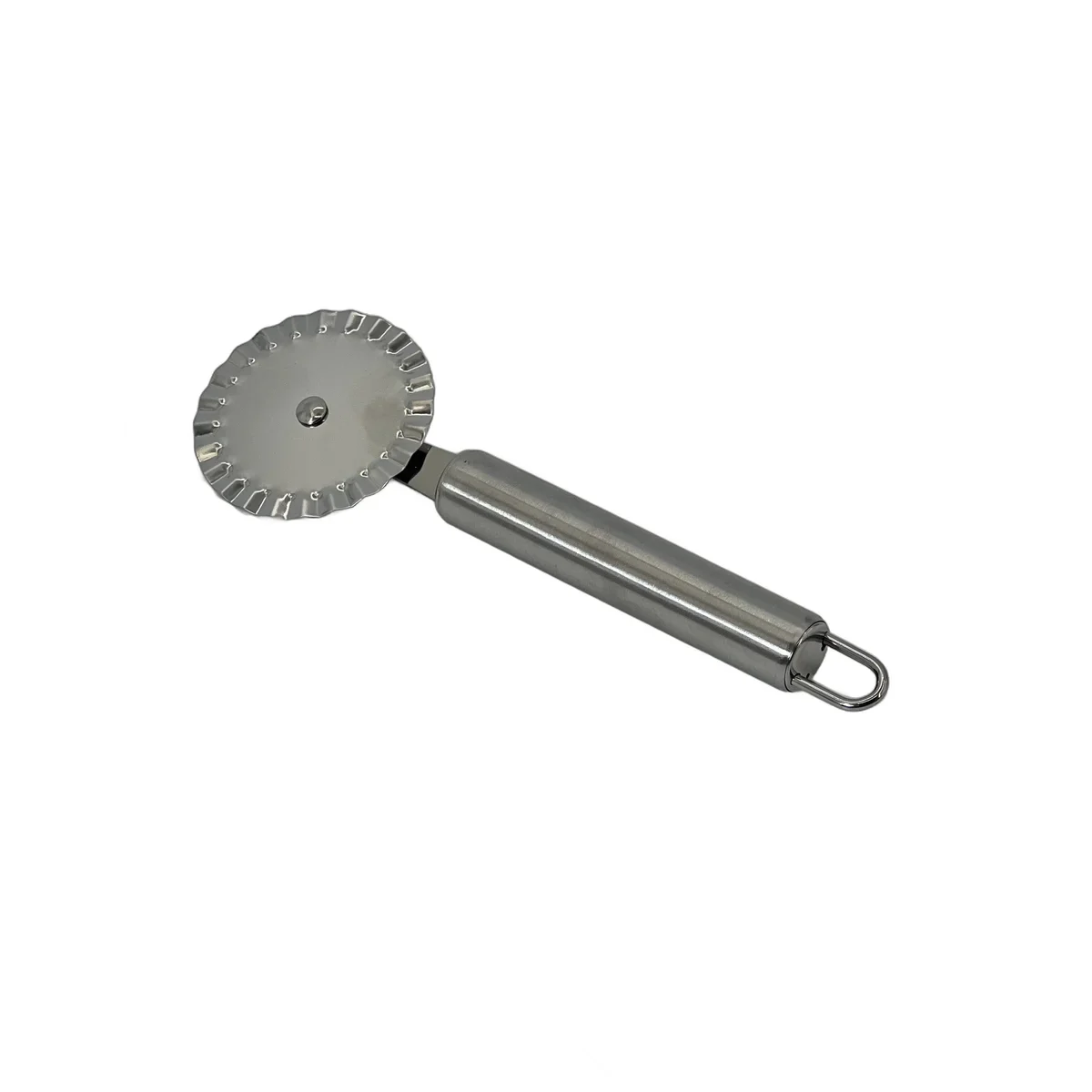Taietor inox cu lama zimtata, lungime 19 cm. Creeaza margini ondulate decorative pentru placinte, biscuiti sau tavi de paste.
