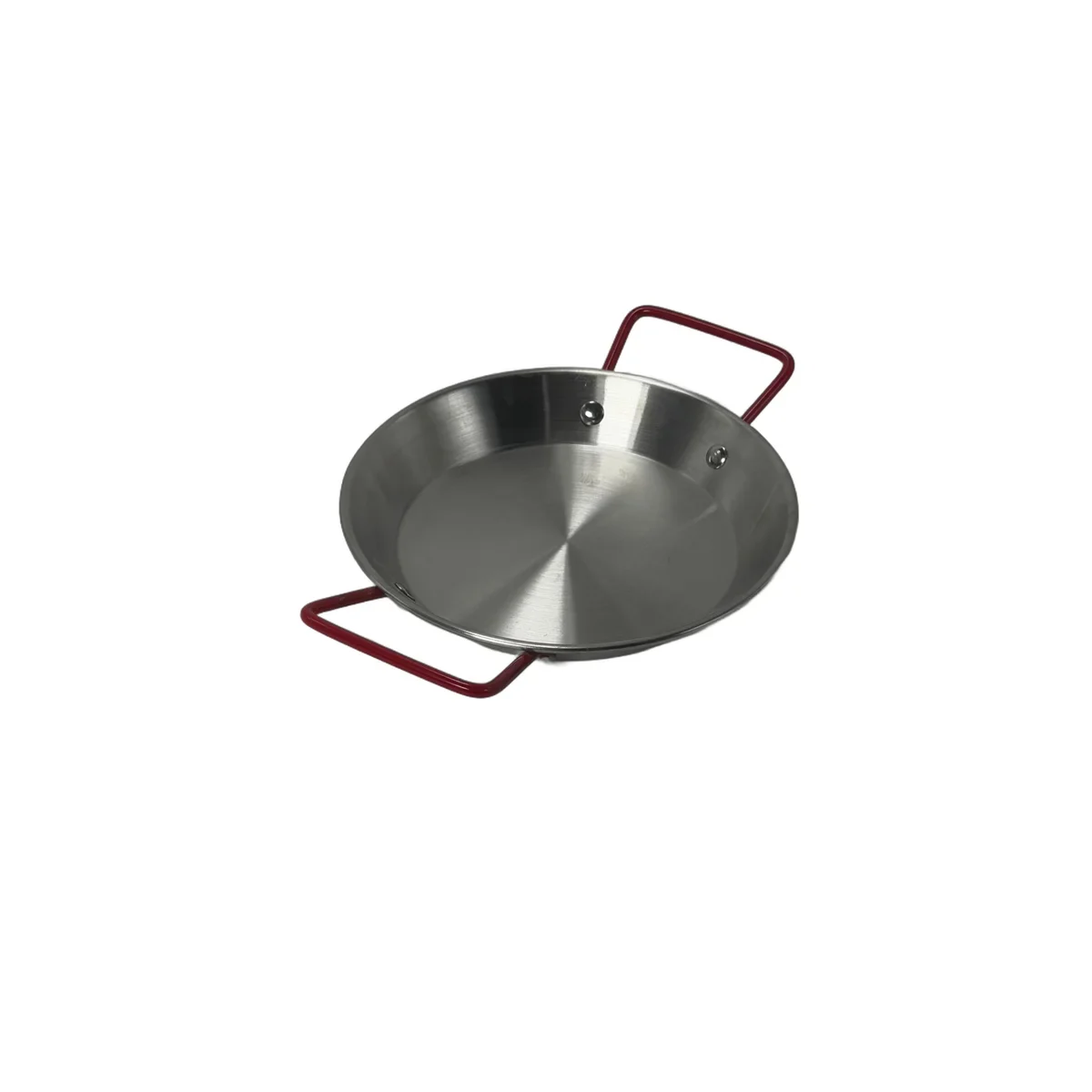 Tigaie din inox cu diametru de 20 cm, prevazuta cu doua manere laterale rosii din material termorezistent. Ideala pentru gatit sau servire directa la masa.