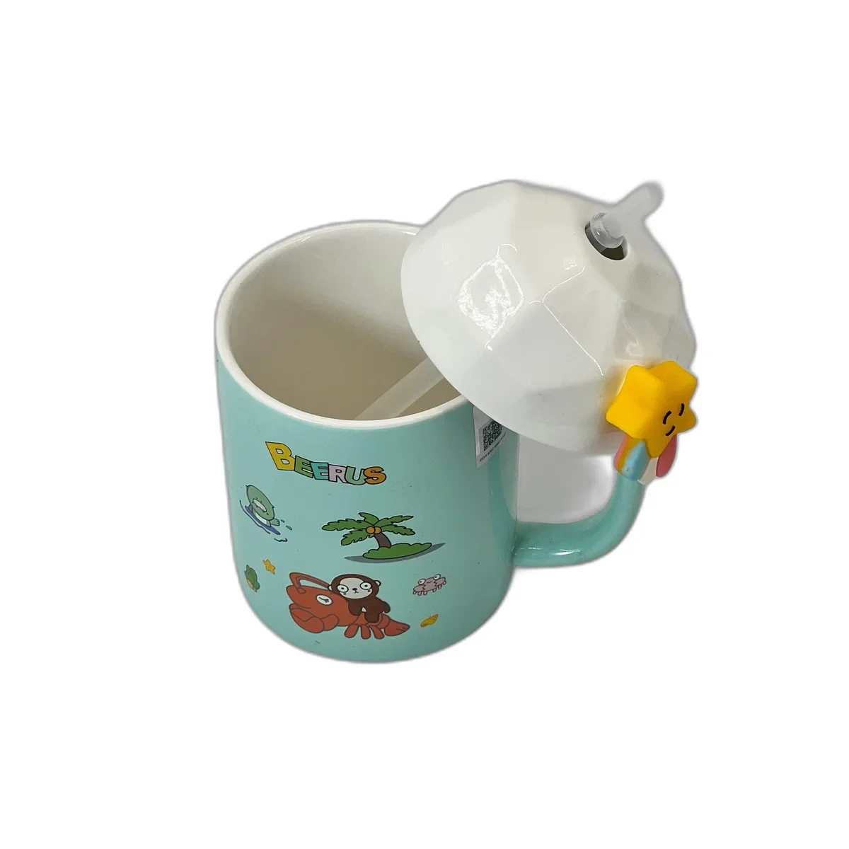 Material: Ceramică + plastic sigur pentru pai și capac