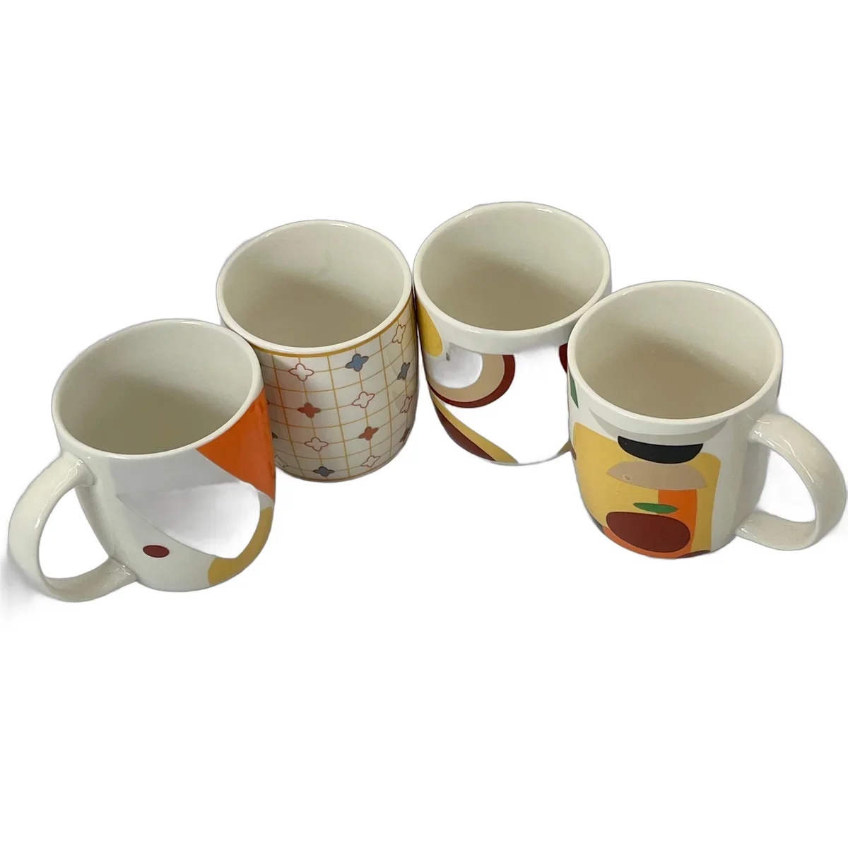 Adauga un accent de stil retro in bucataria ta cu setul de cani din portelan cu design geometric inspirat din estetica anilor ‘70. Ideale pentru iubitorii de detalii vintage, aceste cani sunt create pentru utilizare zilnica si se remarca prin combinatia de functionalitate si personalitate vizuala.