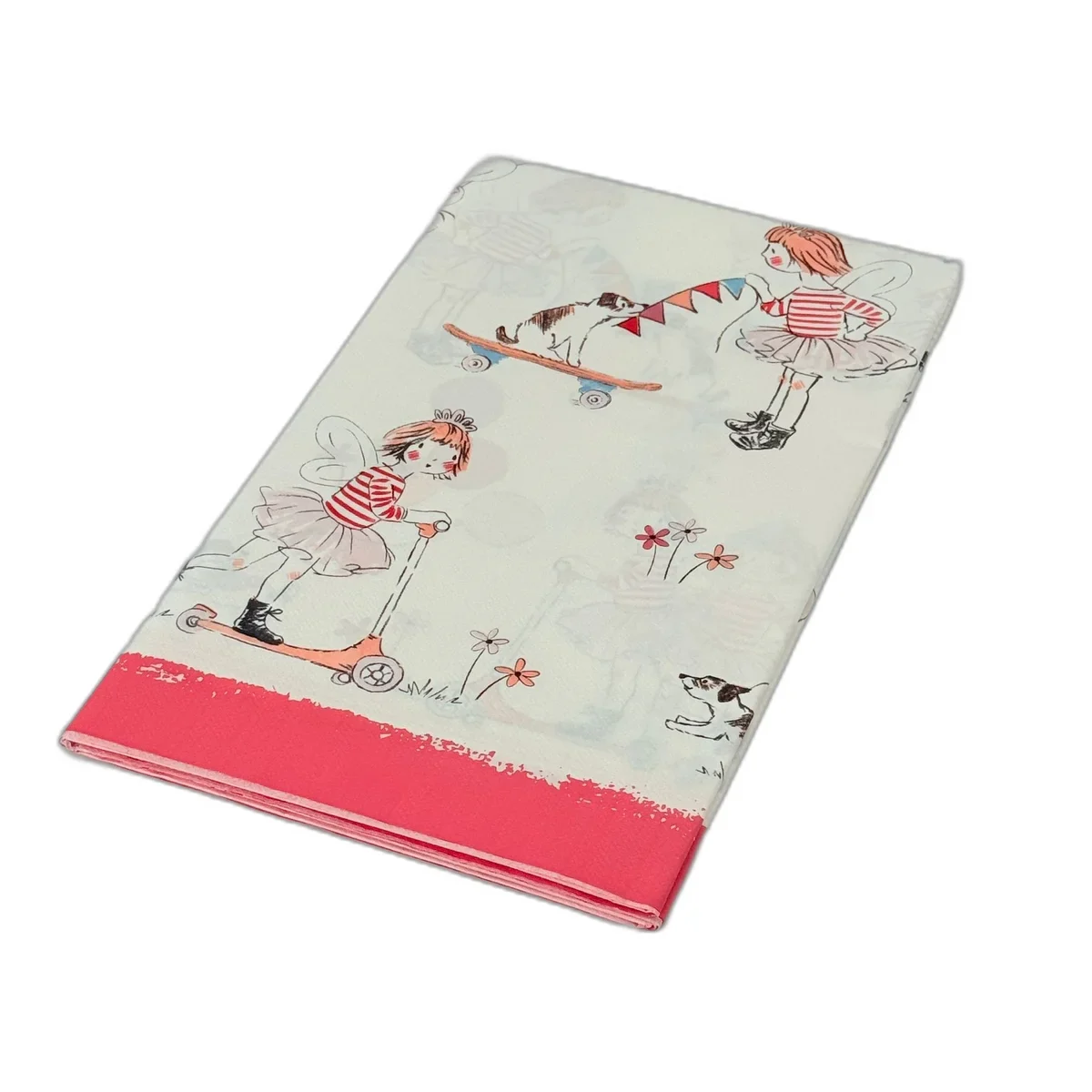 Adauga un plus de veselie si culoare mesei tale cu fata de masa cu fetite jucause, perfecta pentru uz zilnic sau ocazii speciale. Materialul rezistent asigura durabilitate si intretinere facila, iar dimensiunile generoase acopera mesele de pana la 180 cm lungime.