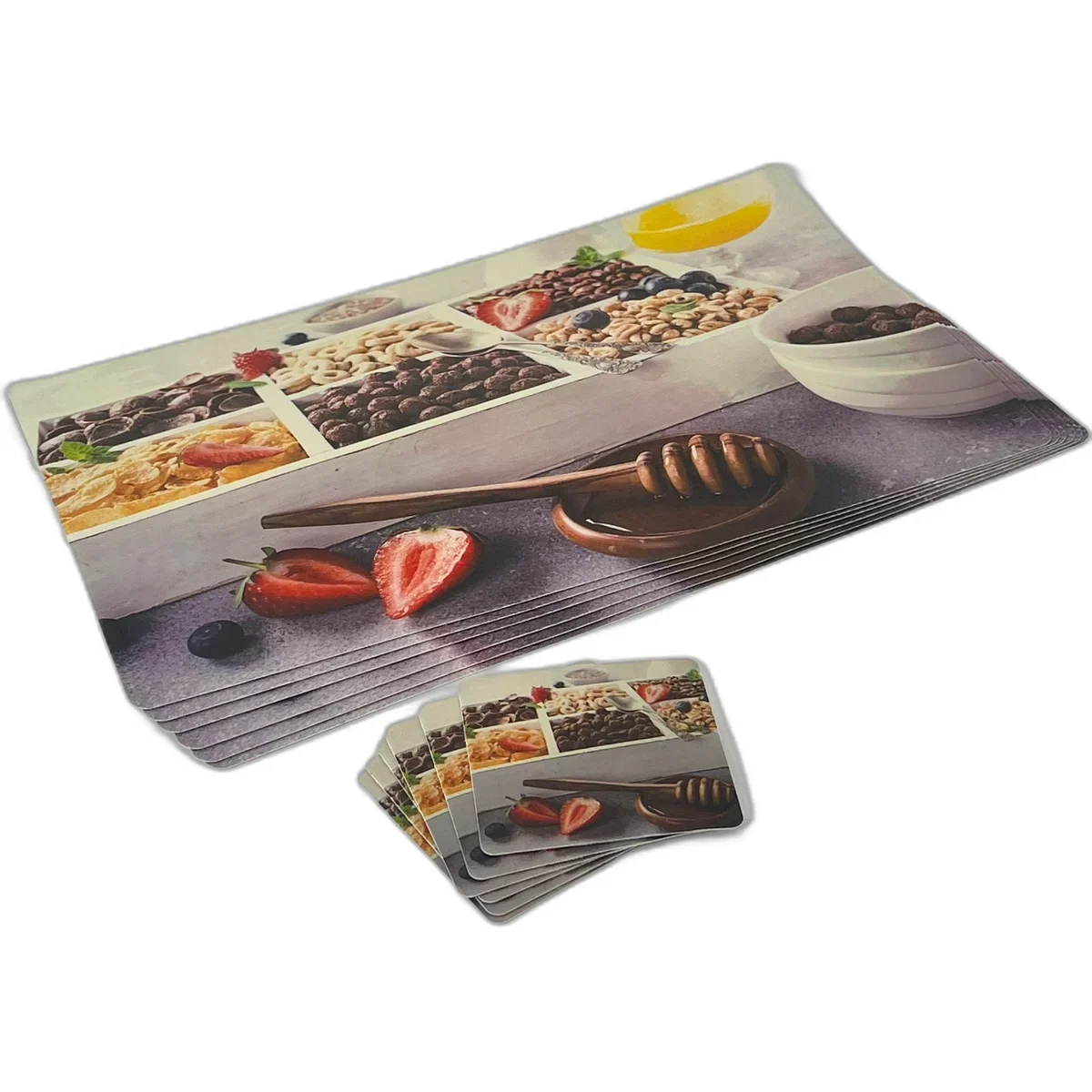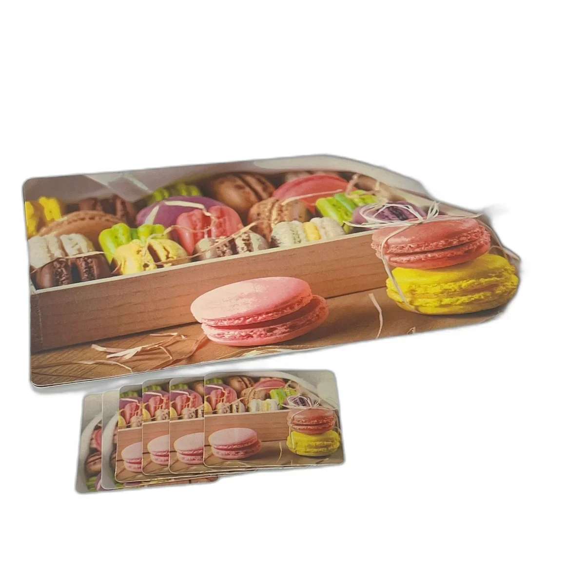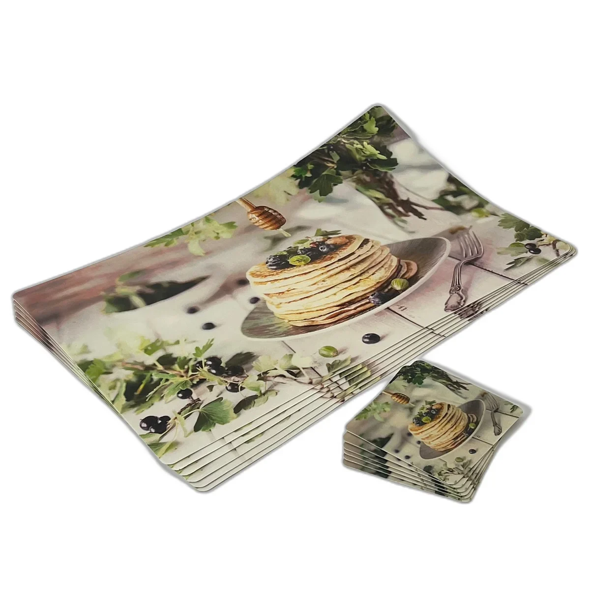 Adauga un plus de culoare si originalitate mesei tale cu setul de suporturi pentru masa si pahare, cu design creativ inspirat de clatite pancakes. Realizat din material lavabil, acest set este practic si usor de intretinut, fiind perfect pentru decor tematic sau cadouri inspirate.