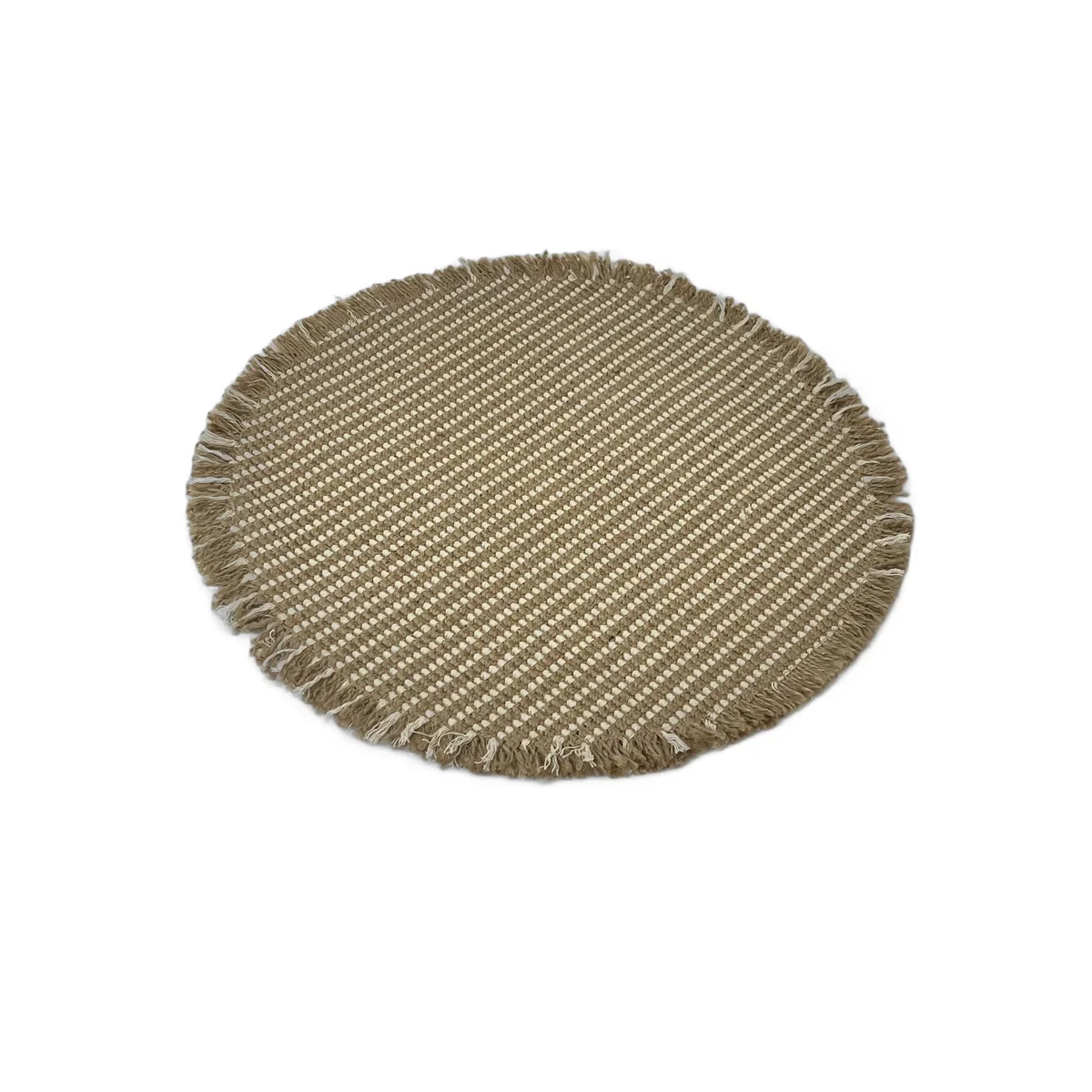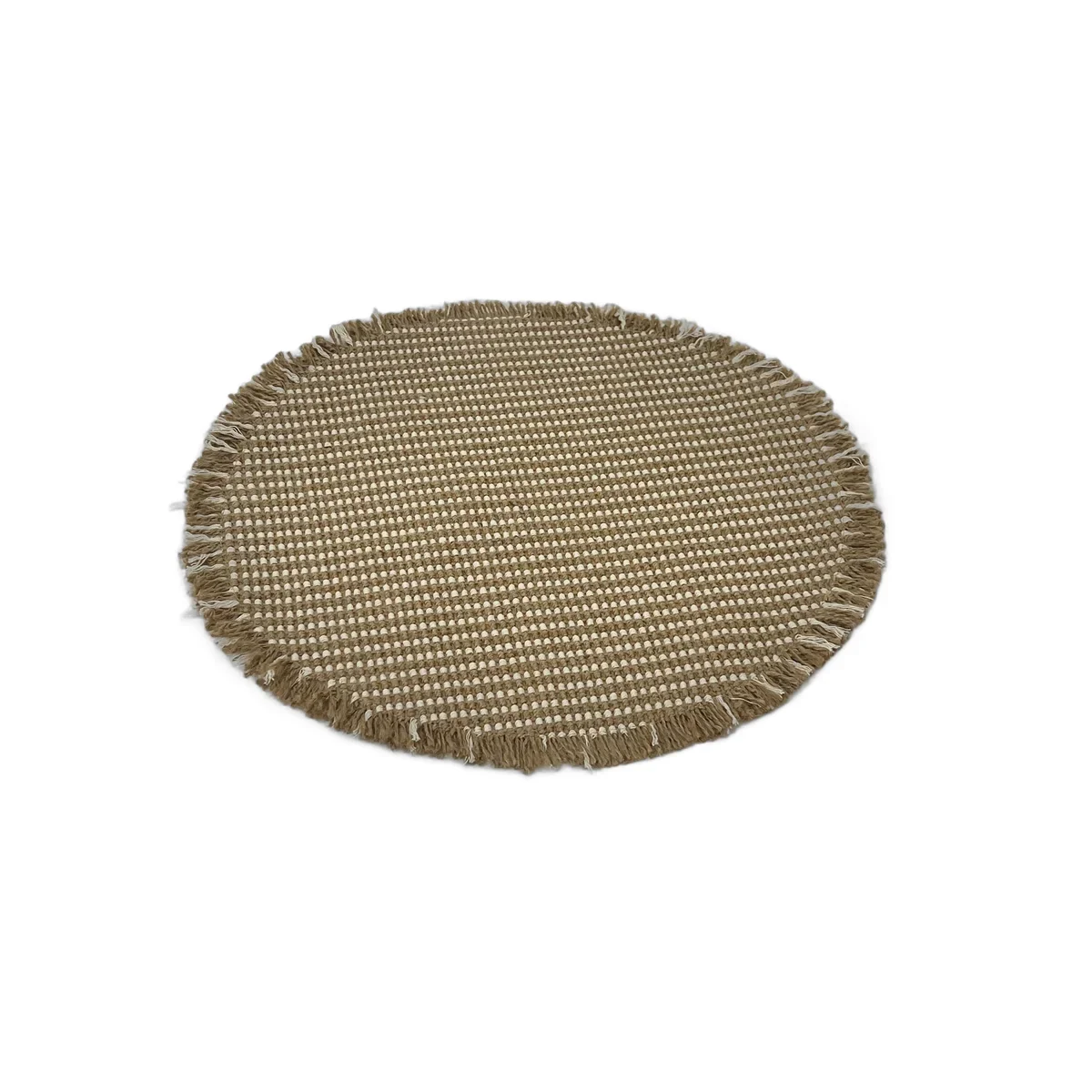 Adauga un aer boem decorului mesei tale cu acest suport rotund cu franjuri, cu diametrul de 38 cm. Realizat din material textil moale si lavabil, este alegerea perfecta pentru mese cu tematica rustica, aranjamente vintage sau evenimente speciale.