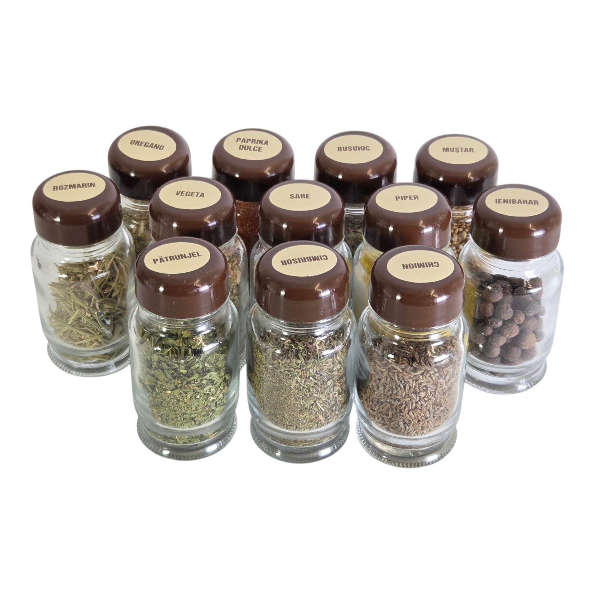 Set complet cu 12 recipiente – organizare practică pentru mai multe tipuri de condimente