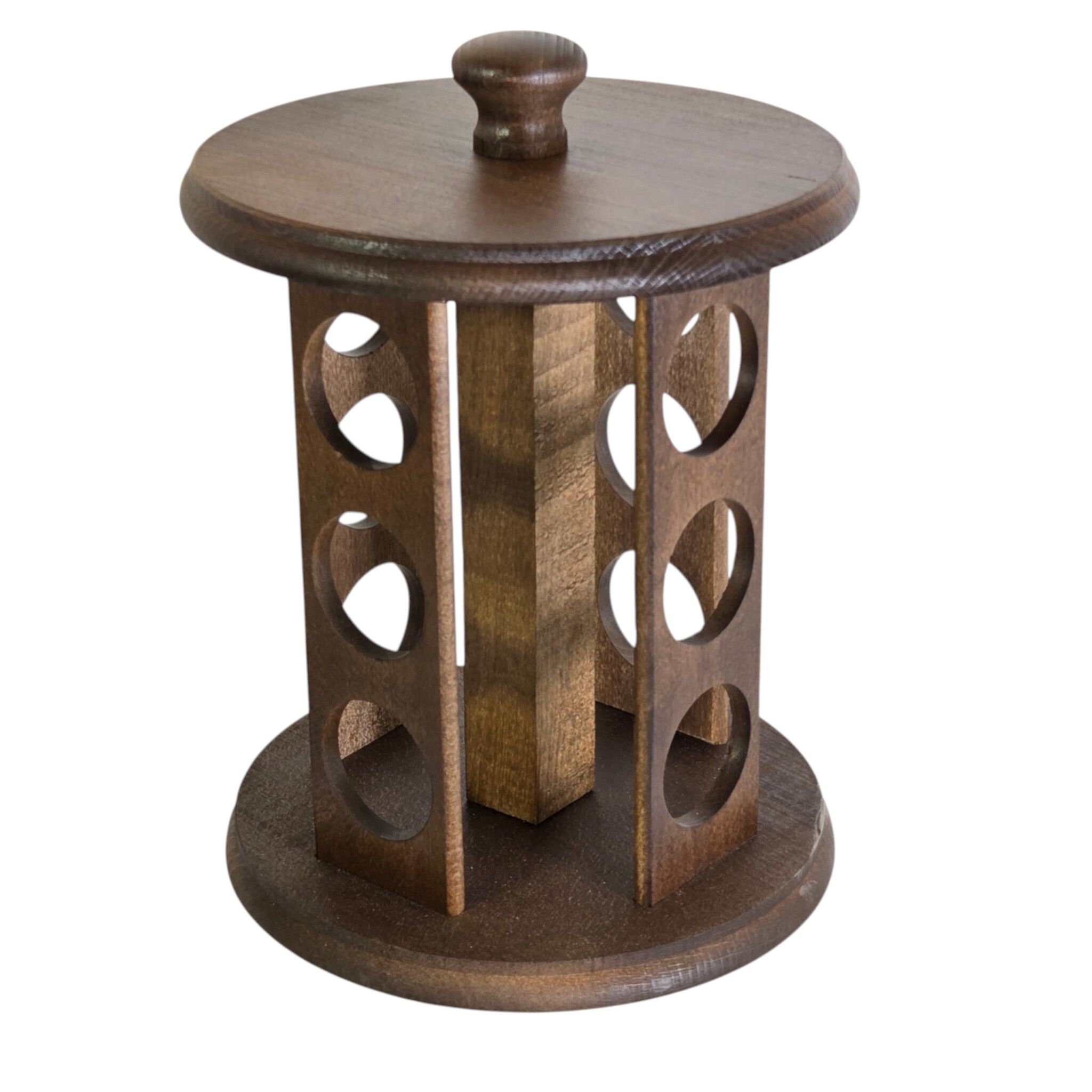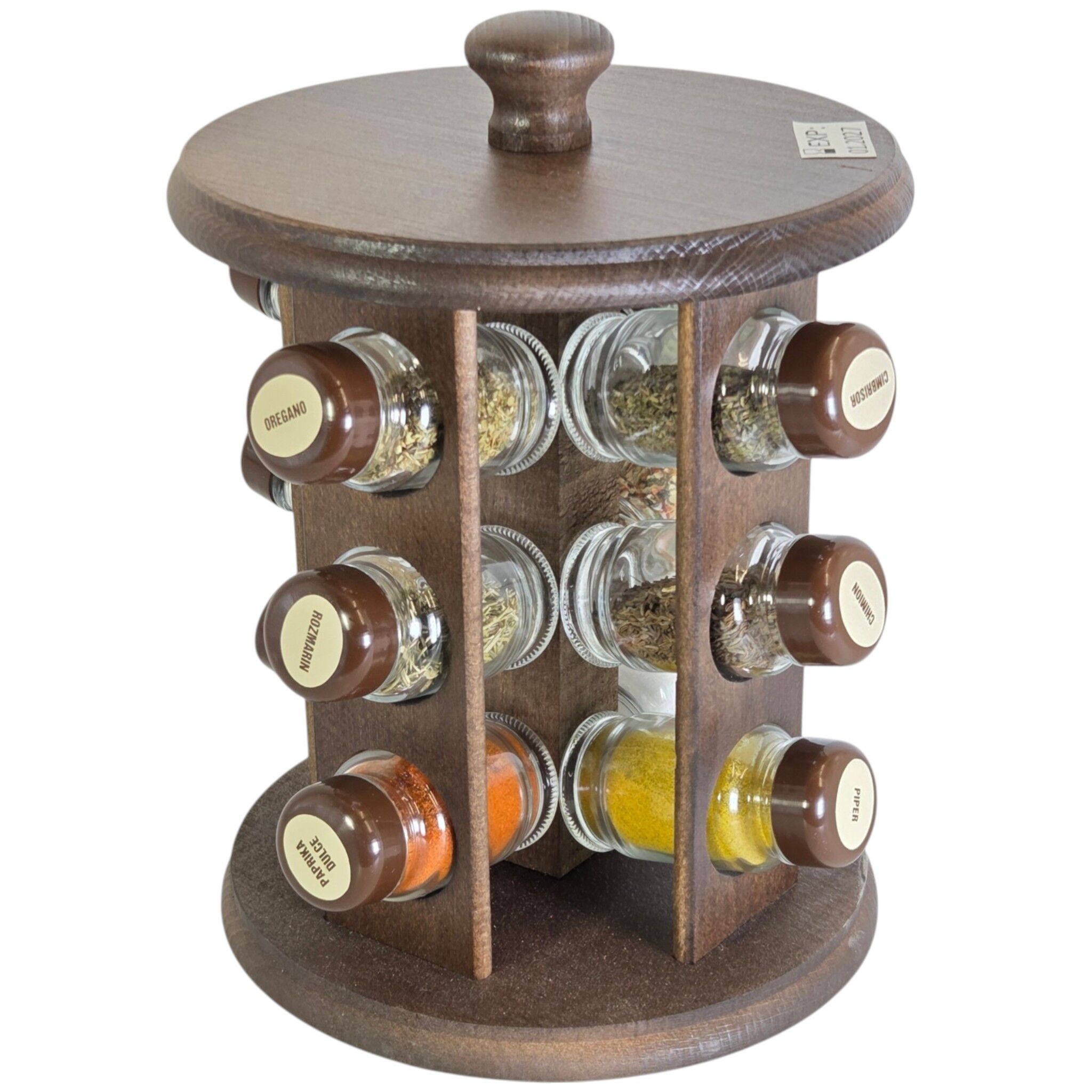 Setul suport pentru condimente cu 12 recipiente din sticlă este conceput pentru organizarea eficientă a condimentelor în bucătărie. Suportul rotativ din lemn permite acces rapid la fiecare borcan, economisind spațiu pe blatul de lucru și menținând condimentele organizate într-un singur loc.