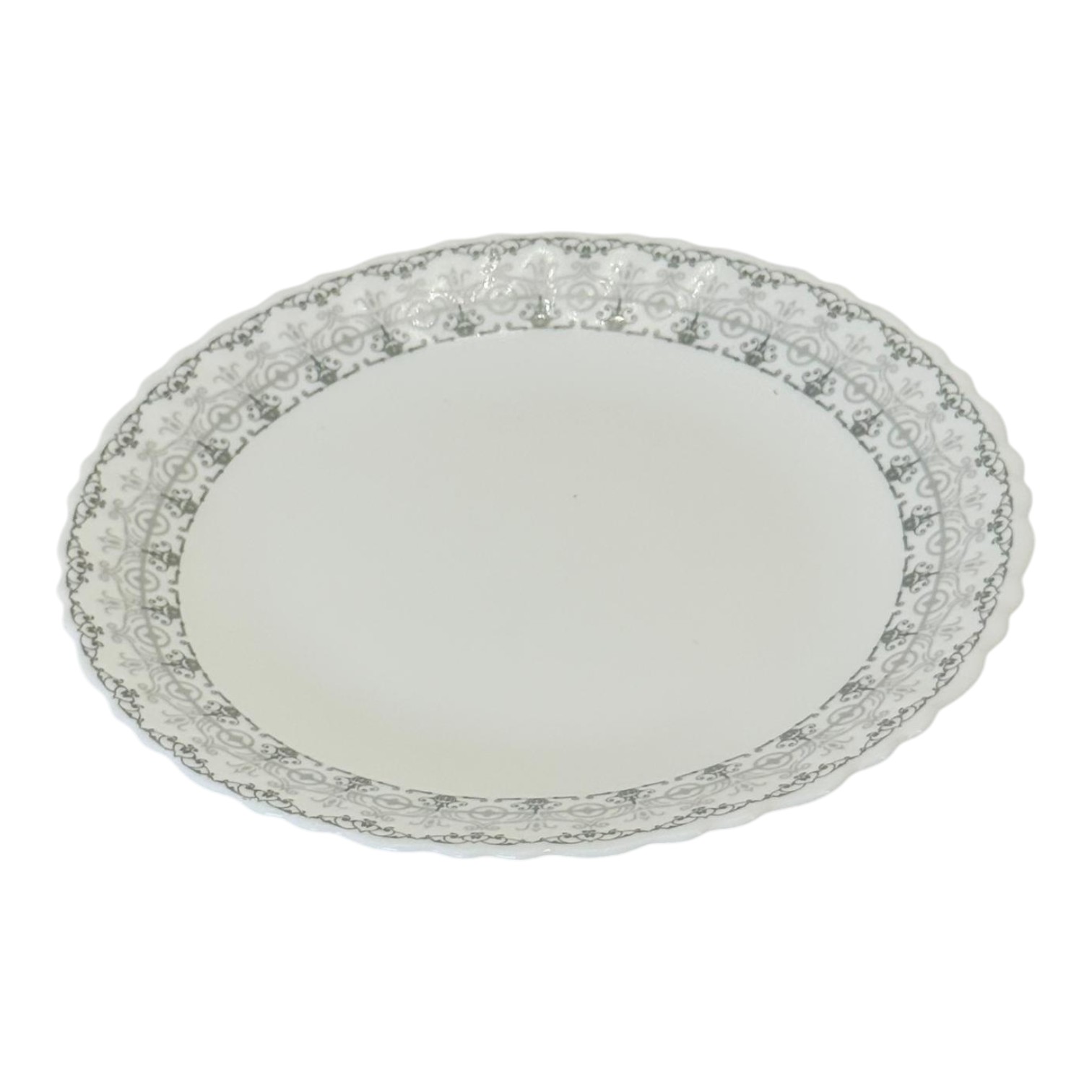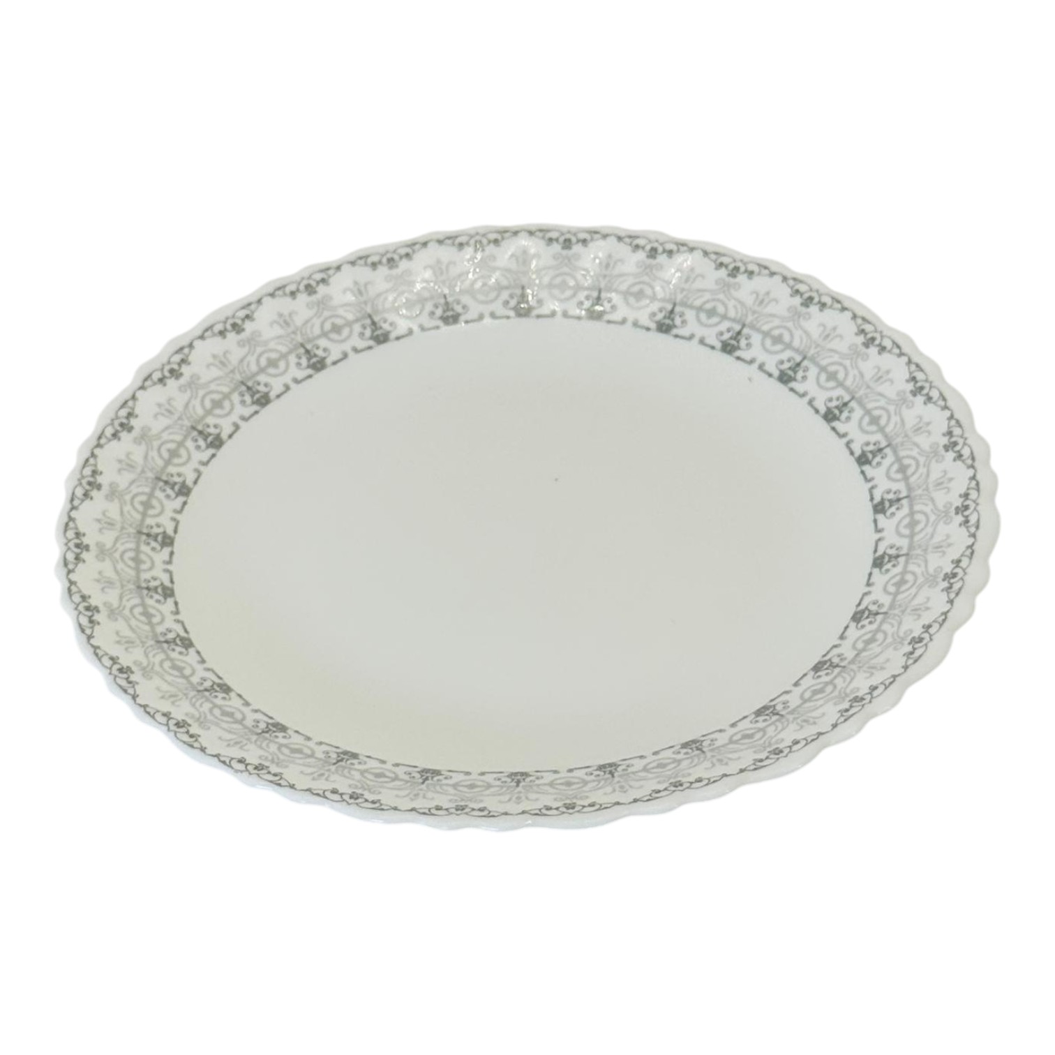 Această farfurie de 19 cm din colecția Klint este potrivită pentru servirea deserturilor, gustărilor sau preparatelor ușoare. Designul decorativ în nuanțe de gri oferă un aspect modern și curat. Suprafețele netede se curăță ușor. Forma clasică și marginea discret reliefată completează aranjarea mesei.