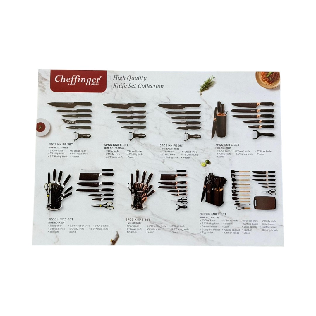 Pregătește rapid și eficient orice ingredient cu setul complet de cuțite Cheffinger, conceput pentru utilizare zilnică în bucătărie. Fiecare piesă este proiectată pentru un tip specific de tăiere, oferind control bun, manevrare confortabilă și o experiență practică în timpul preparării alimentelor. Setul include și un decojitor util pentru curățarea rapidă a fructelor și legumelor.