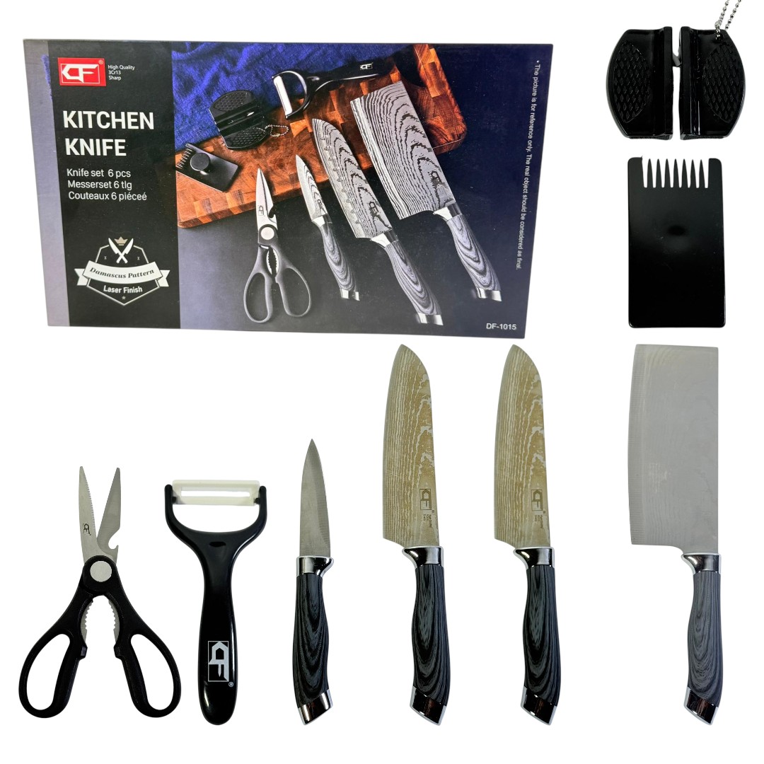 Comanda acum setul de cutite bucatarie 8 piese cu design damasc si bucura-te de precizie, rezistenta si stil la fiecare preparat!