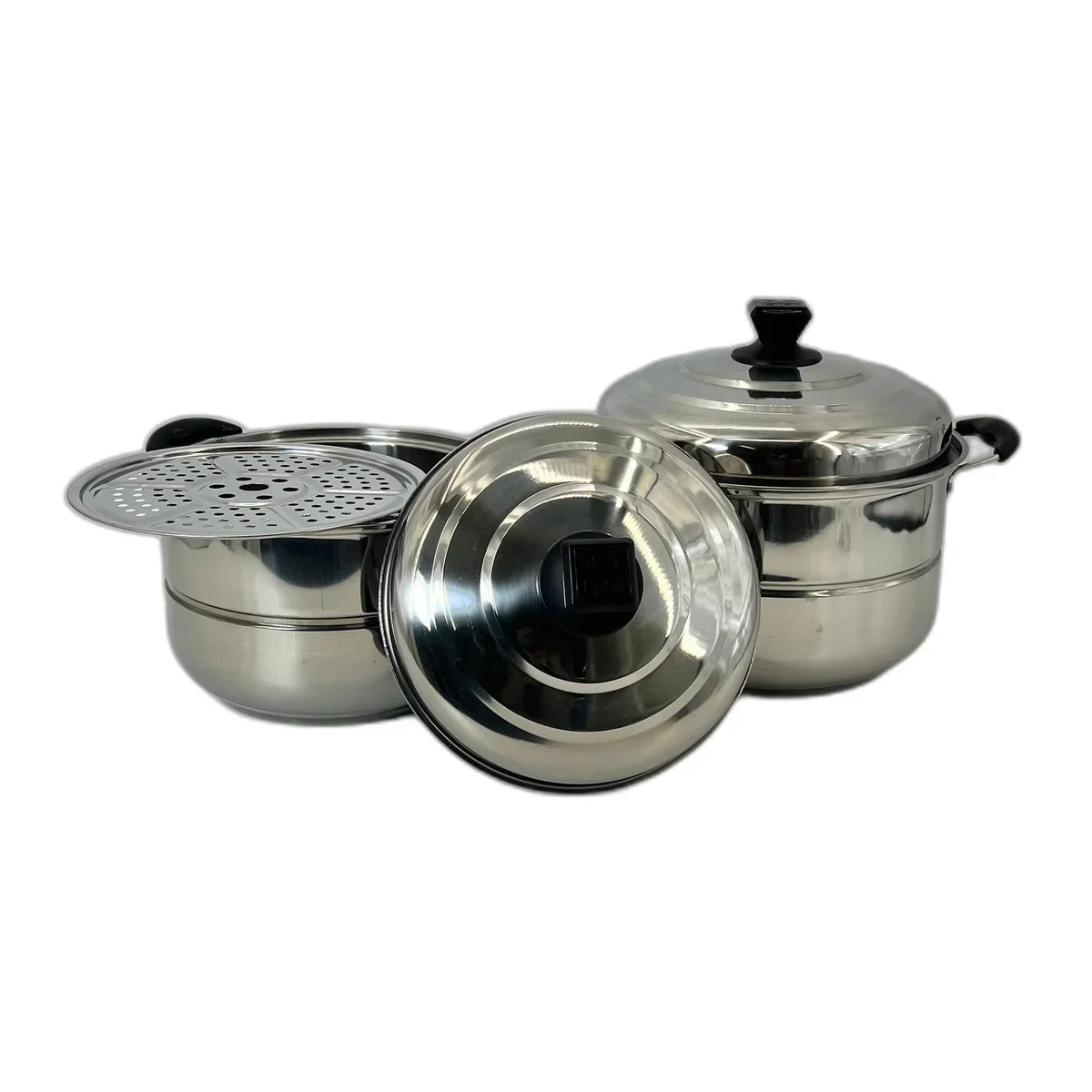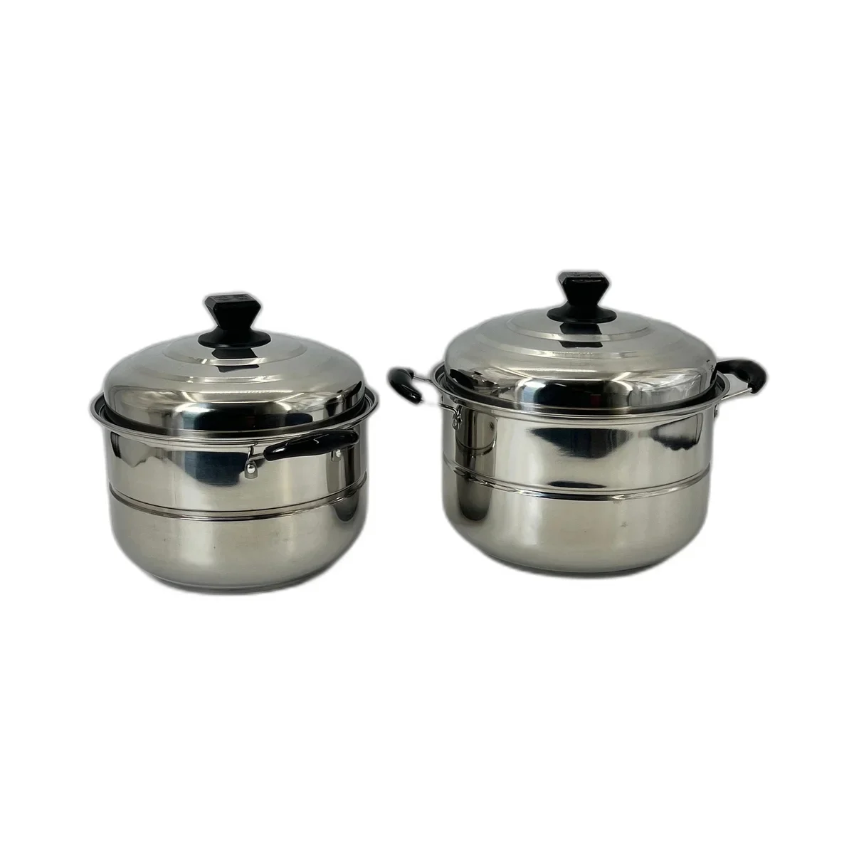 Gătește sănătos și eficient cu setul de oale din inox cu aburi, cu diametre de 26 și 28 cm și două niveluri pentru preparate simultane. Capacurile din sticlă rezistente permit monitorizarea procesului de gătire, iar inoxul durabil asigură distribuția uniformă a căldurii, păstrând aroma și nutrienții alimentelor.