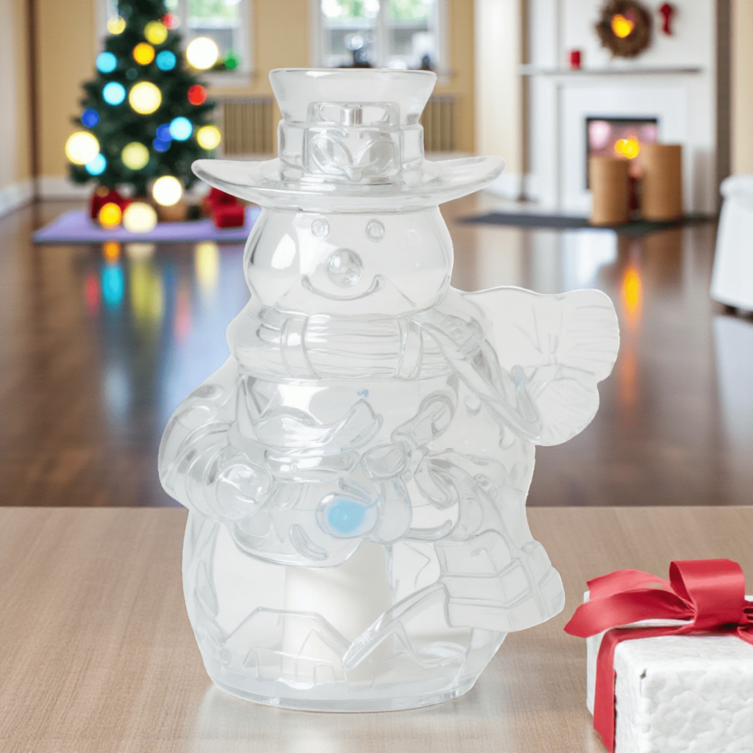 Creează o atmosferă de sărbătoare în casa ta cu decorațiunea LED în formă de om de zăpadă, realizată din sticlă transparentă. Designul elegant și lumina caldă oferă un efect vizual spectaculos, transformând orice spațiu într-un colț festiv și primitor.