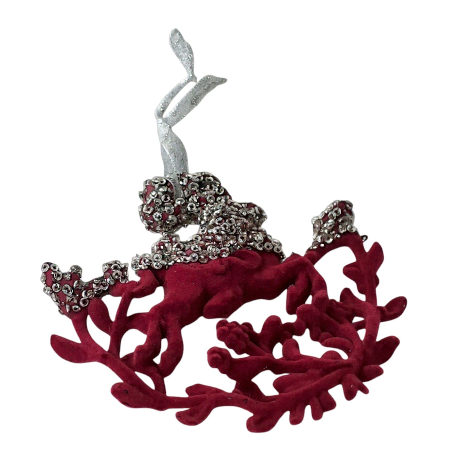 Acest ornament de Crăciun în forma unui ren este realizat din plastic și decorat cu paiete argintii. Modelul are dimensiunea de 12×12 cm și este potrivit pentru brad artificial sau natural. Suprafața cu paiete oferă un efect vizual clar în decorul interior pentru sezonul de sărbători. Prinderea este stabilă și permite fixarea rapidă pe ramuri, ghirlande sau aranjamente festive.
