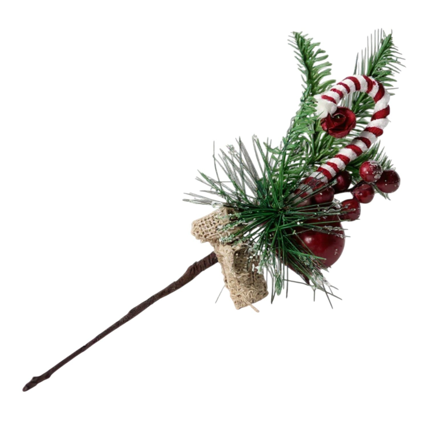 Completează-ți decorațiunile de sărbători cu această ramură decorativă de Crăciun, care îmbină armonios simbolurile festive clasice. Acadeaua roșu-alb, globul roșu mat, bacele strălucitoare și crenguțele de brad verde creează un efect vizual elegant și plin de farmec, perfect pentru a adăuga un plus de culoare și autenticitate decorului tău.