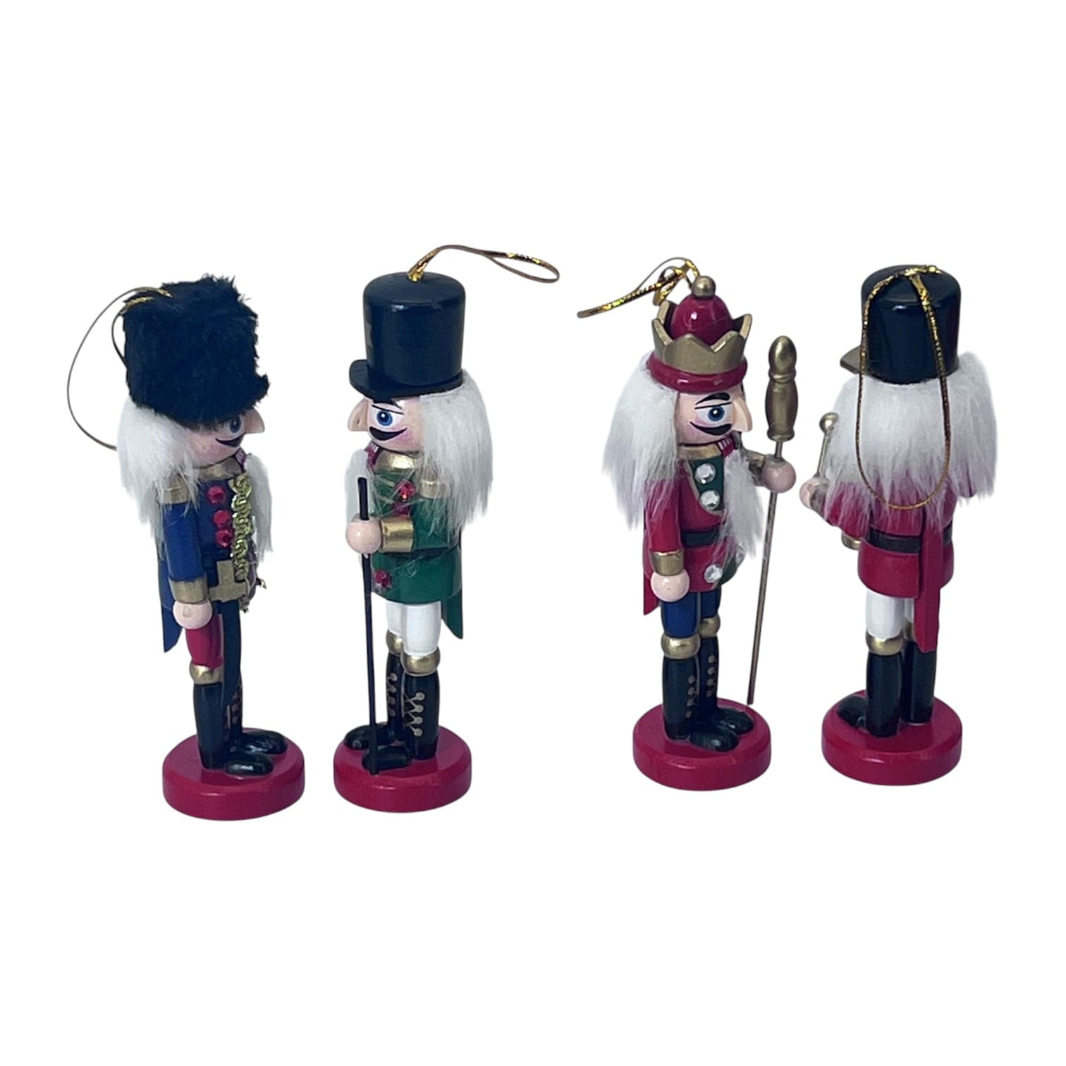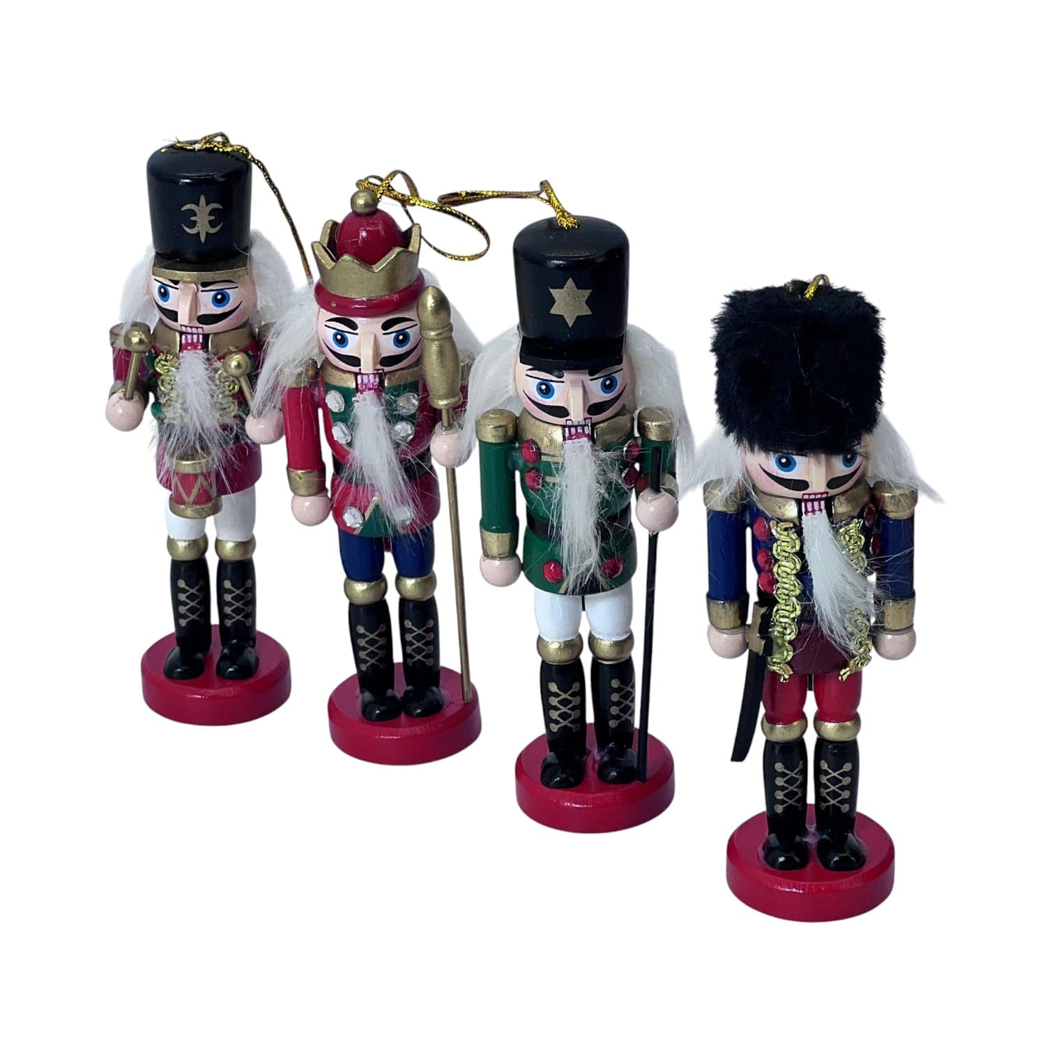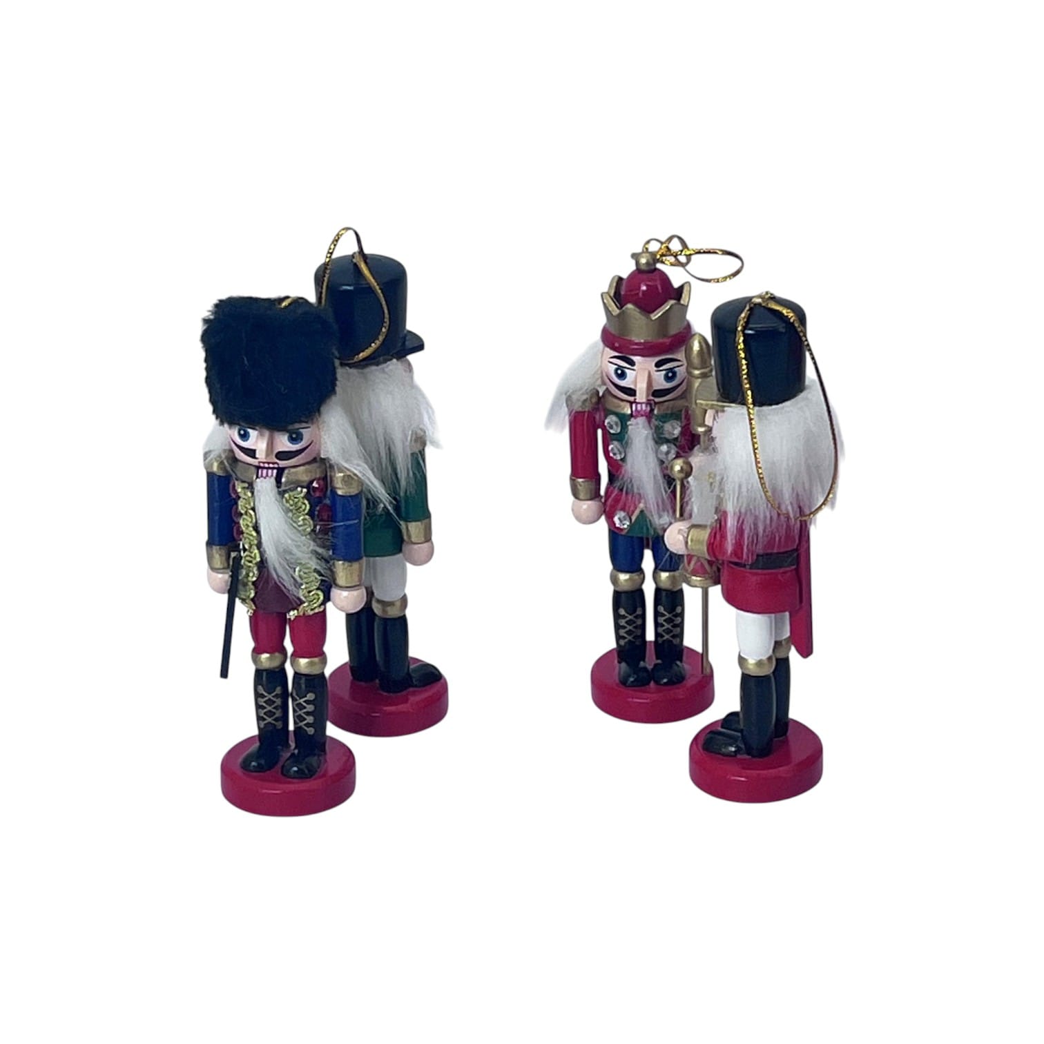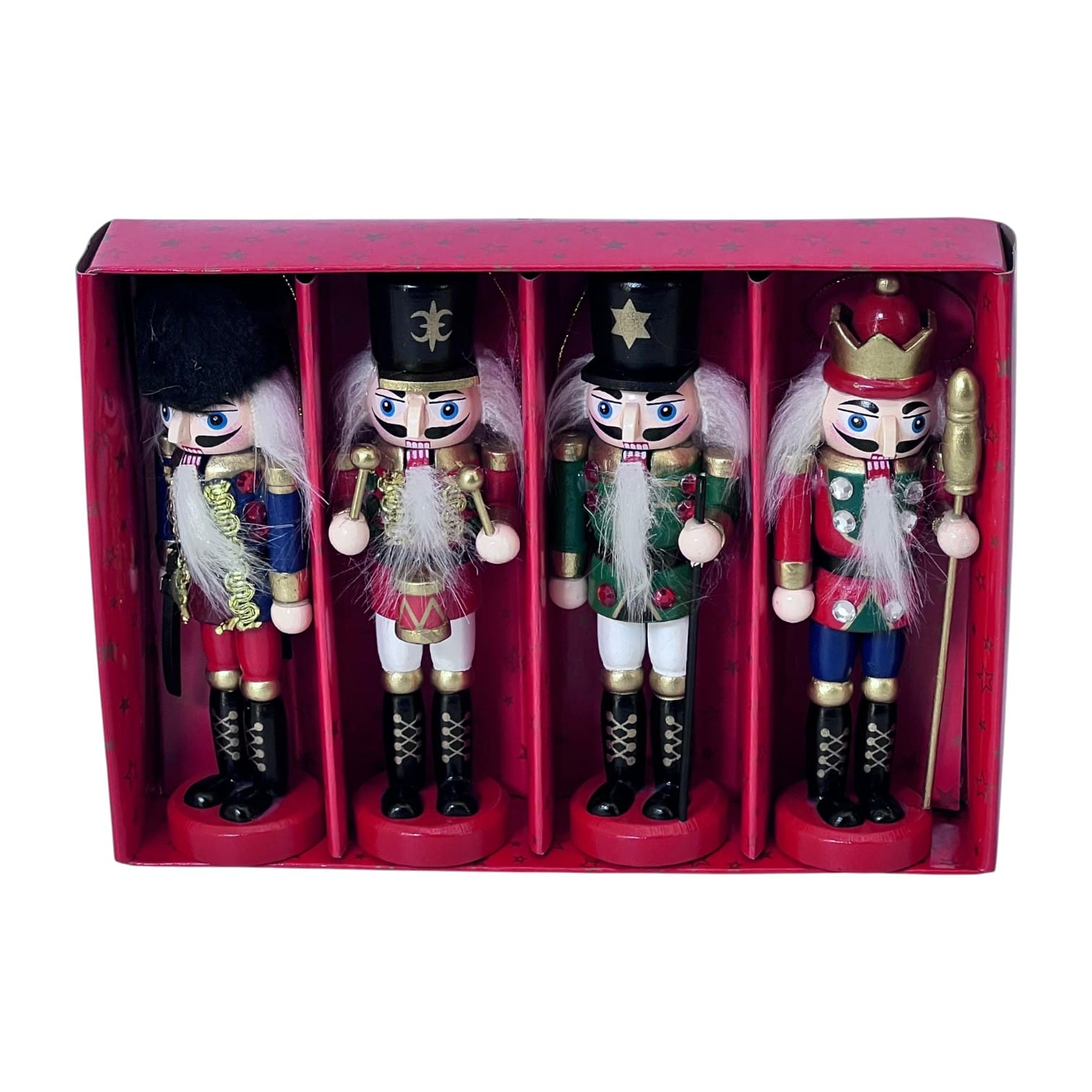 Adaugă farmecul clasic al Crăciunului cu un set de 4 soldăței Spărgător de Nuci, confecționați din lemn și pictați manual în culori tradiționale de sărbătoare. Fiecare figurină este prevăzută cu agățătoare, ideală pentru bradul de Crăciun sau pentru aranjamente festive.