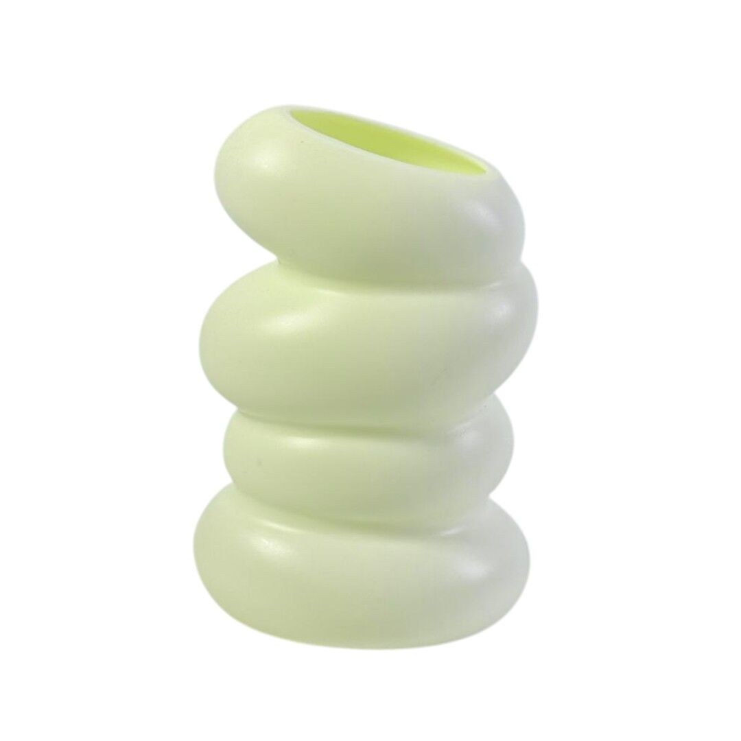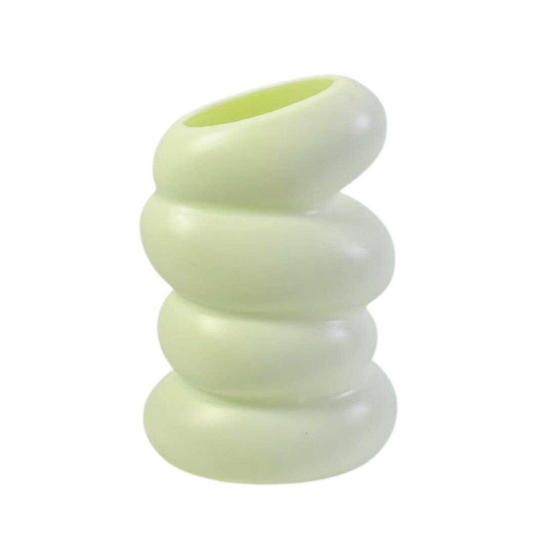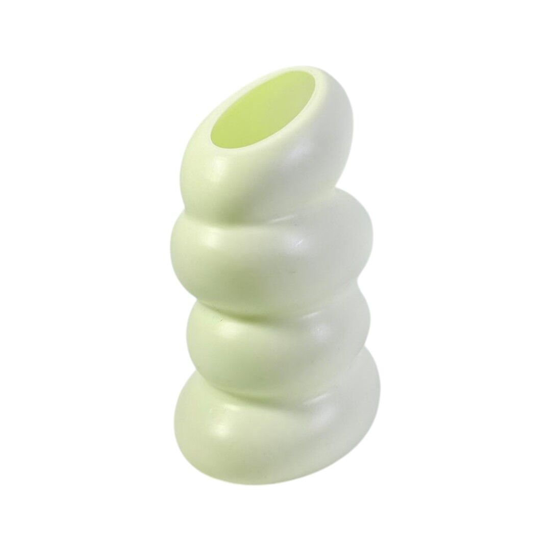 Această vază decorativă din plastic este destinată aranjamentelor florale și decorării spațiilor interioare. Forma spiralată cu volume rotunjite oferă un design modern și compact, ușor de integrat pe birou, raft sau masă.