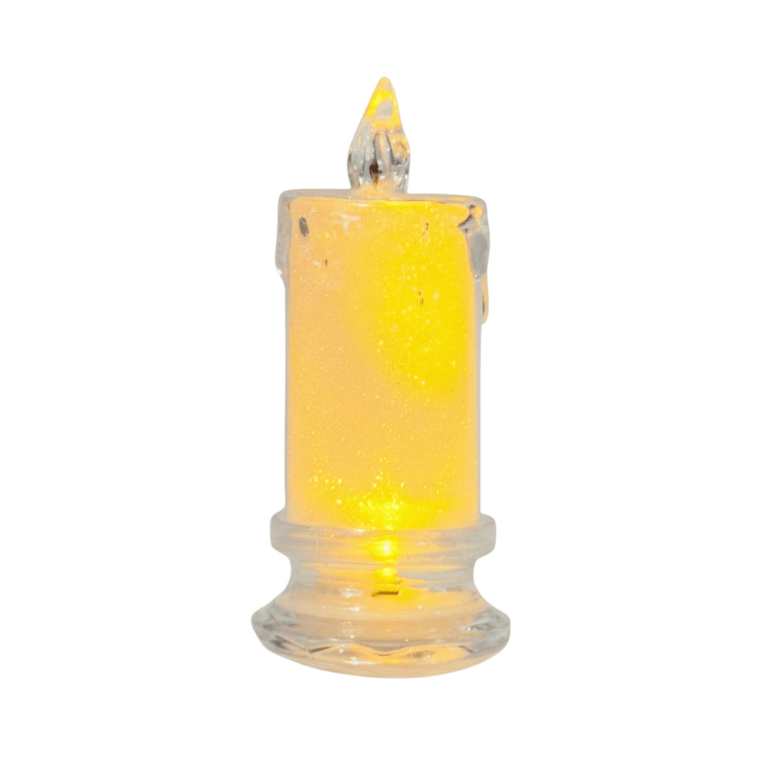 Fabricată din material transparent, lumânarea imită perfect aspectul cearii topite, fiind o alegere sigură și modernă pentru locuință, restaurante, evenimente sau sărbători. Funcționează cu baterii și nu necesită flacără reală.