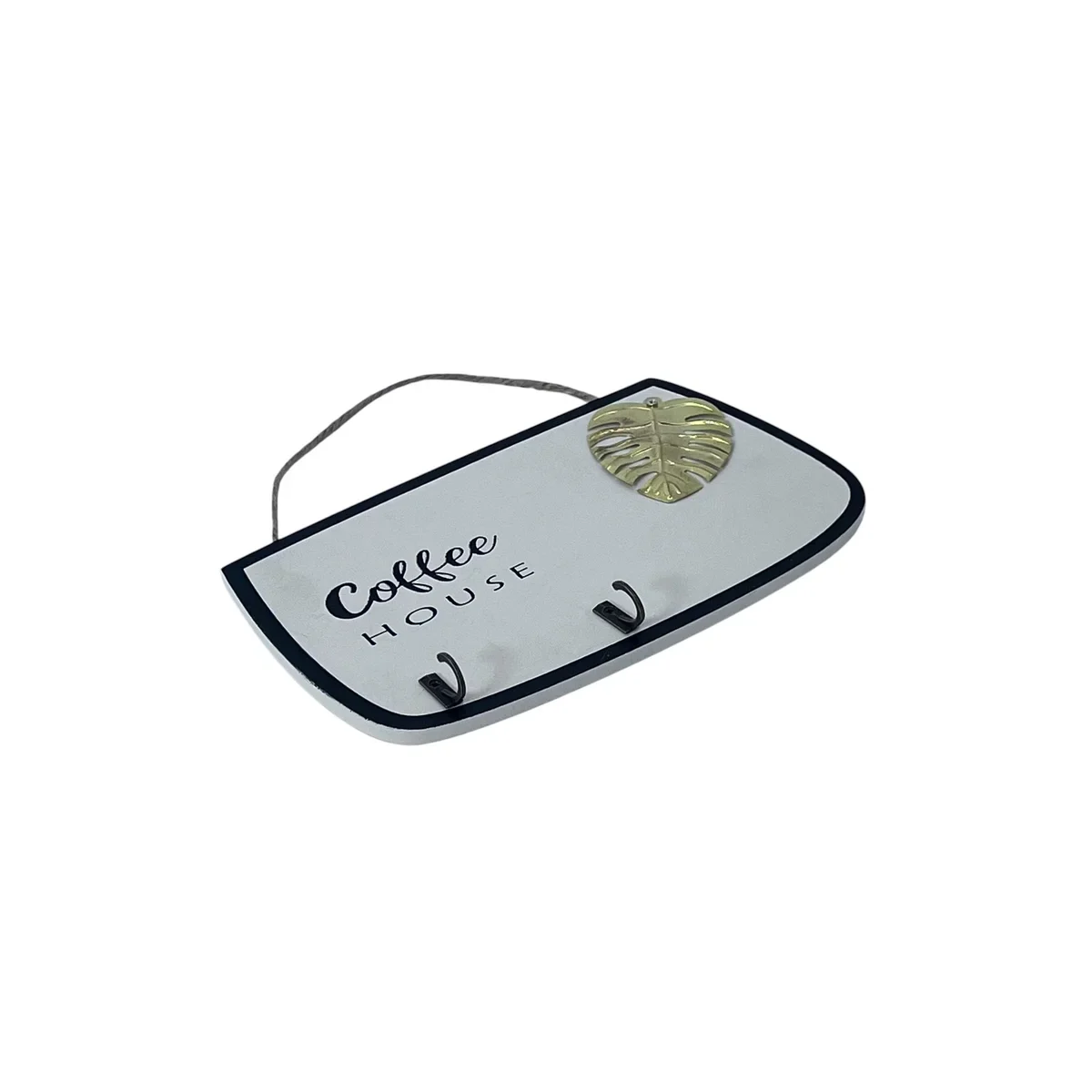 Adaugă un detaliu practic și decorativ în bucătărie sau hol cu acest cuier de perete din lemn, prevăzut cu 2 agățători rezistente. Designul „Coffee” cu frunză decorativă metalică îl face un element atractiv și funcțional, ideal pentru spațiile moderne și primitoare.