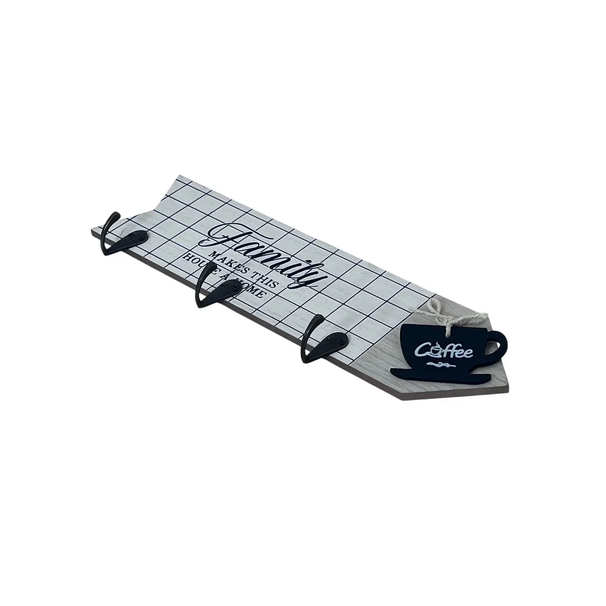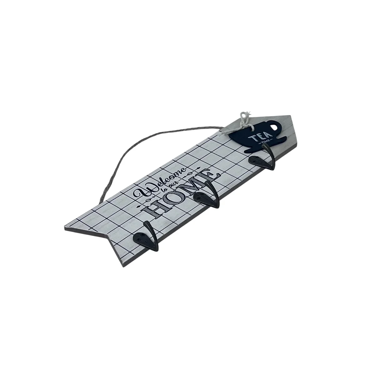 Îmbină utilul cu plăcutul în amenajarea casei tale cu acest cuier de perete decorativ, confecționat din lemn și prevăzut cu 4 agățători metalice rezistente. Designul elegant „Welcome to our Home” și detaliul decorativ cu ceașcă de ceai îl transformă într-un element practic și estetic pentru hol sau bucătărie.