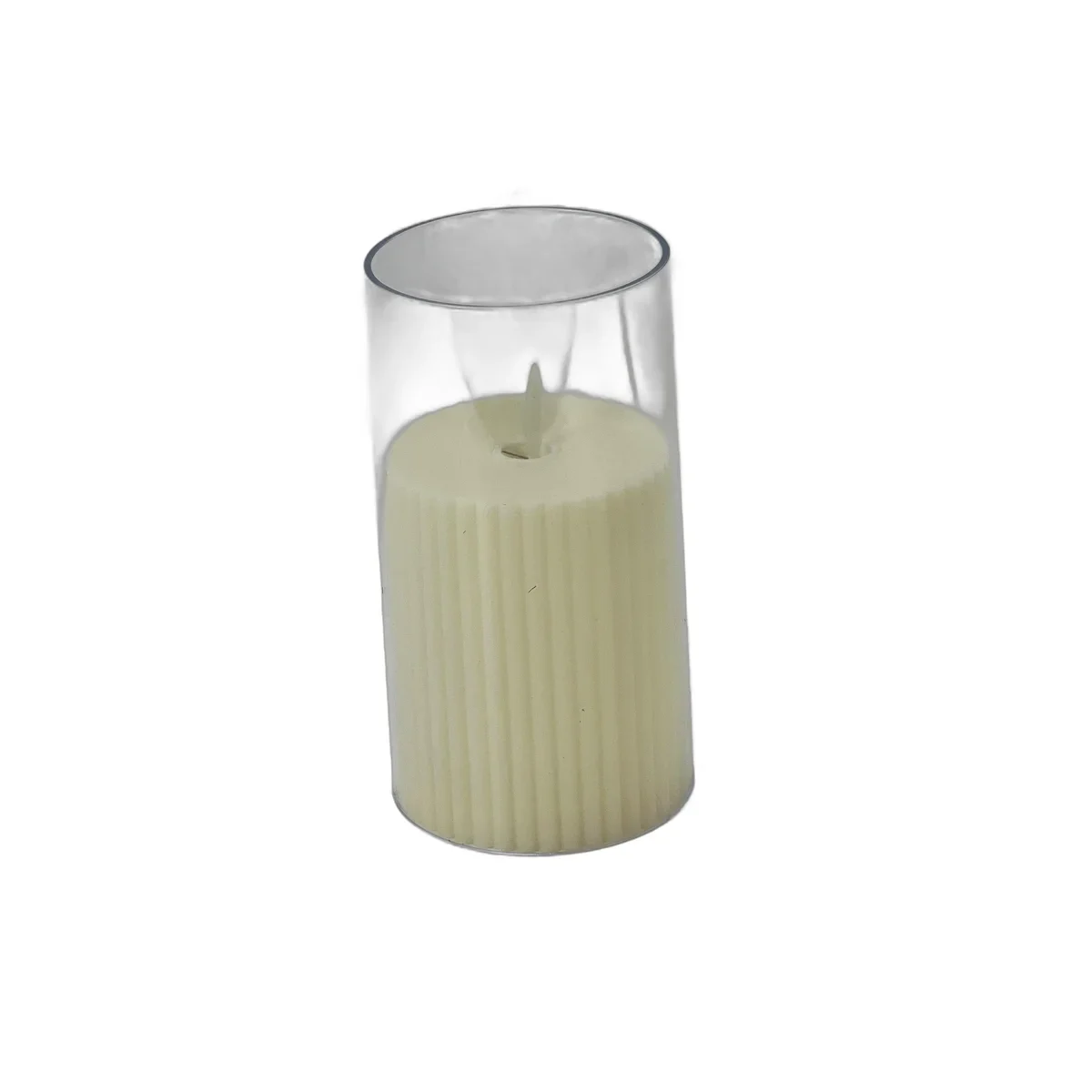 Creează o atmosferă caldă și sofisticată cu această lumânare decorativă LED, cu flacără cu efect realist și suport transparent inclus. Cu un design minimalist și dimensiuni generoase, este perfectă pentru decoruri de interior, vitrine sau evenimente speciale.