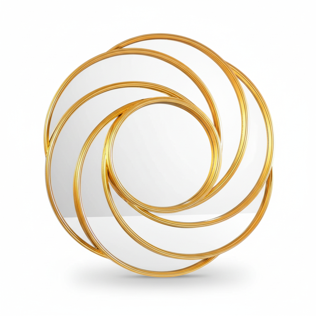 Oglinda decorativă este concepută pentru montaj pe perete în spații interioare, având o formă rotundă și o ramă decorativă realizată din elemente circulare suprapuse, cu finisaj auriu. Designul concentric creează un efect vizual modern și echilibrat, potrivit pentru diverse tipuri de amenajări interioare.