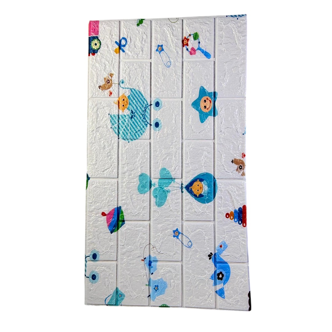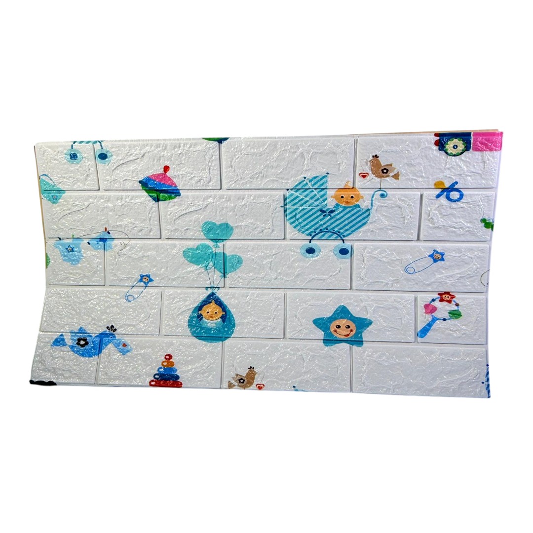 Acest panou autocolant din spumă este conceput pentru decorarea pereților din camerele pentru copii. Suprafața tip cărămidă este combinată cu desene colorate cu bebeluși și elemente jucăușe. Se aplică ușor pe perete și acoperă rapid zone vizibile.