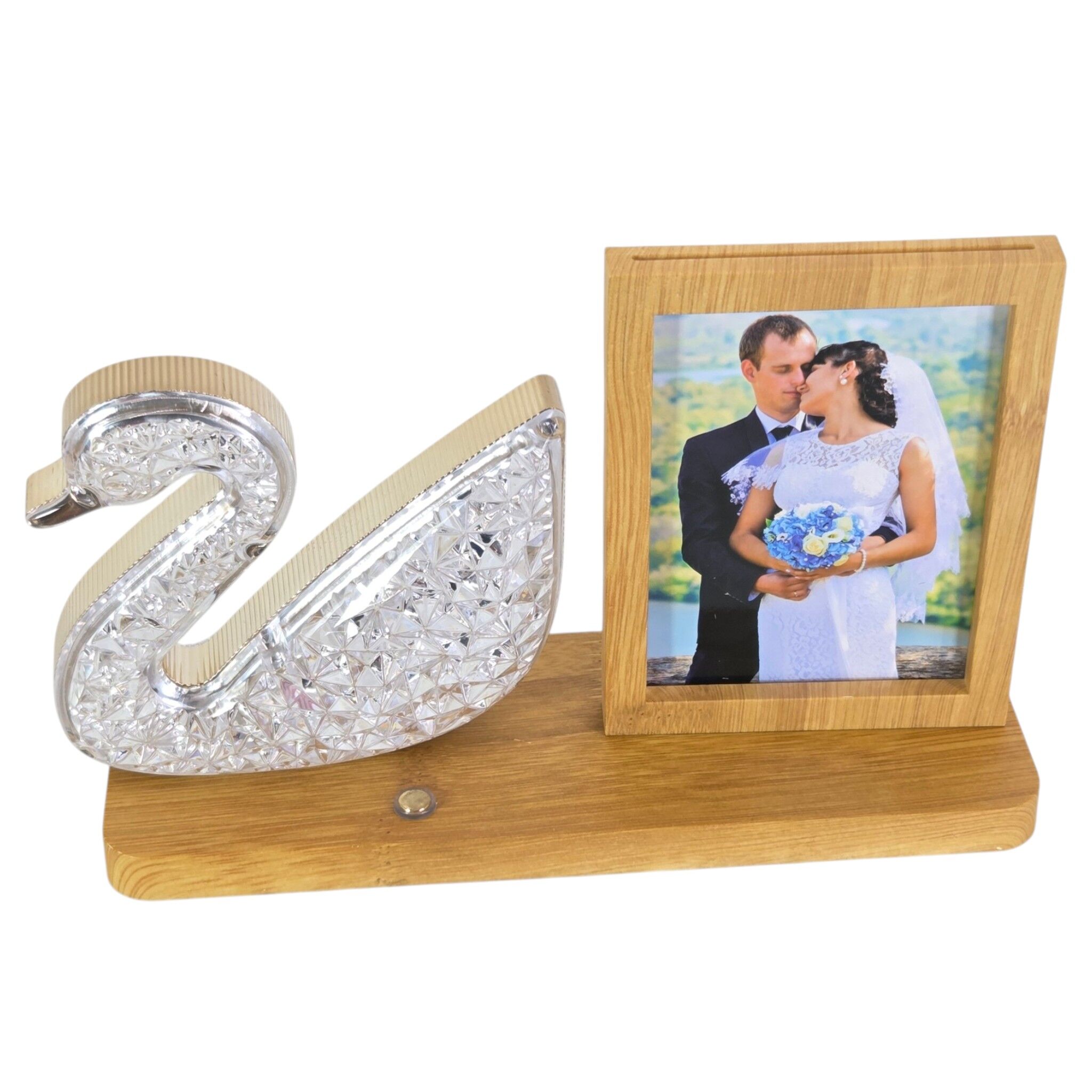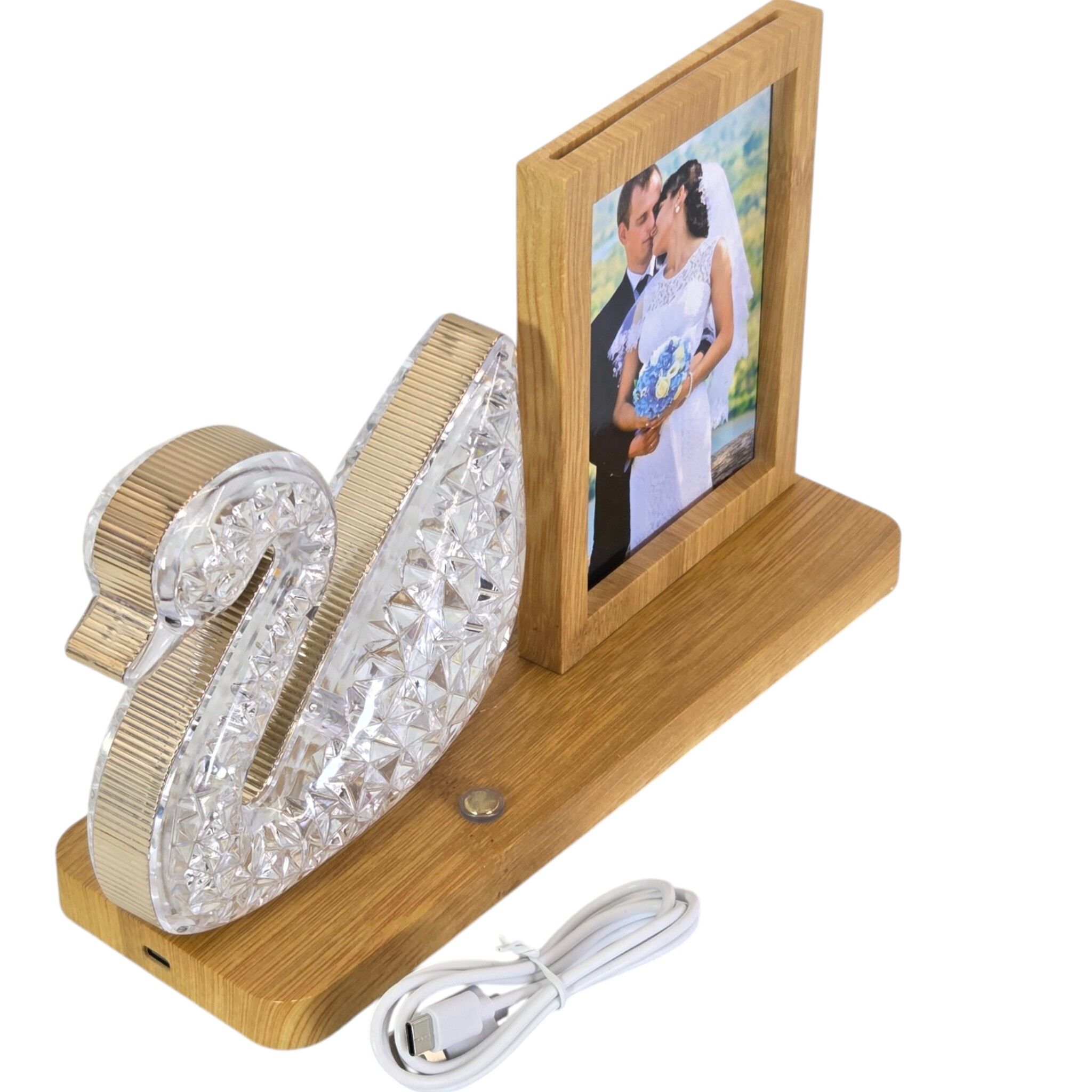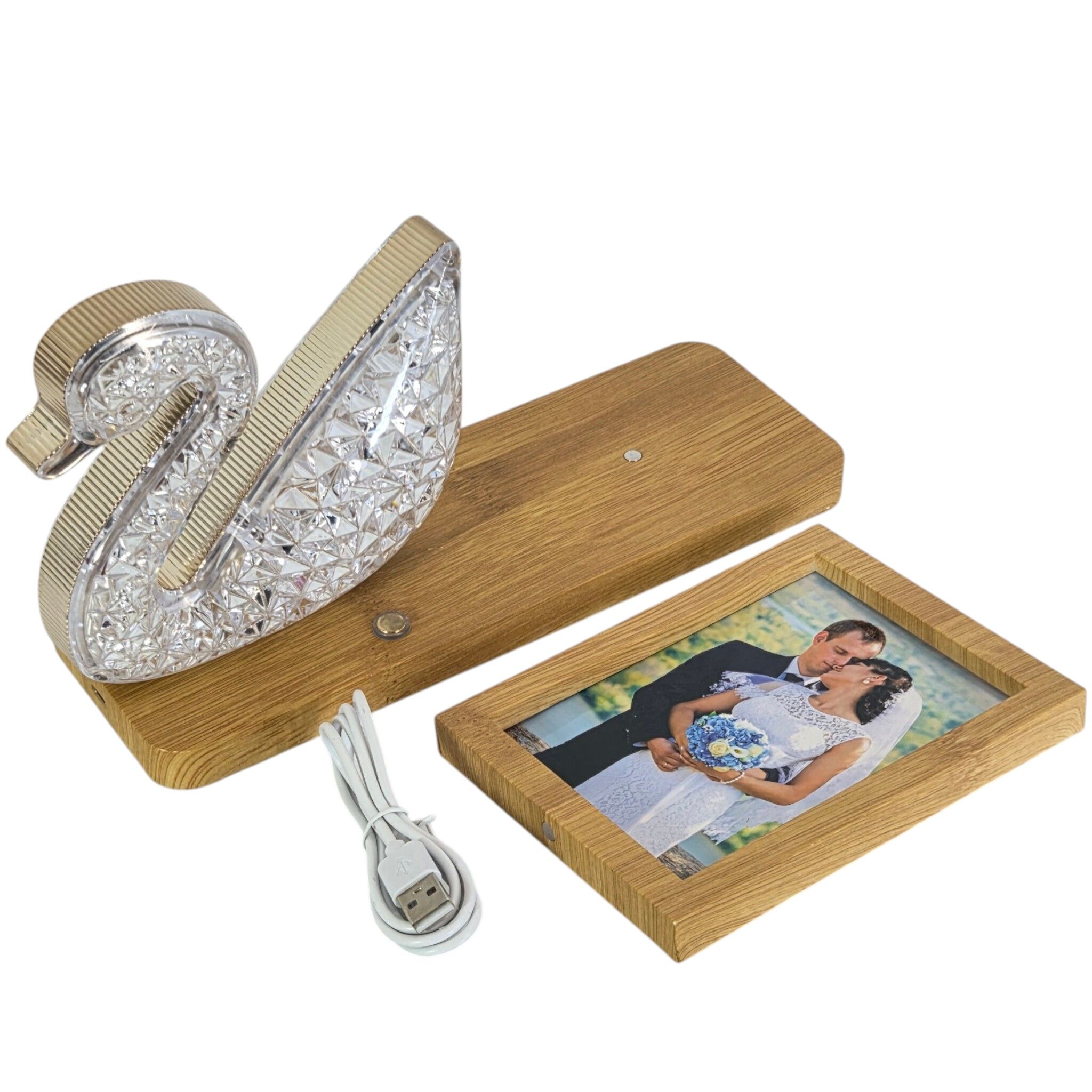 Adaugă un element decorativ elegant și funcțional în spațiul tău cu această lampă LED tip lebădă integrată cu ramă foto, montată pe suport din lemn. Designul modern combină iluminarea ambientală cu posibilitatea de a expune o fotografie dragă, fiind ideală pentru birou, noptieră sau living.