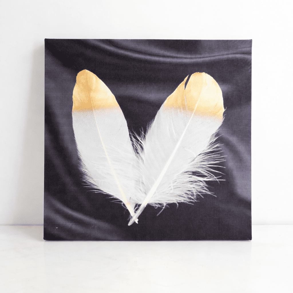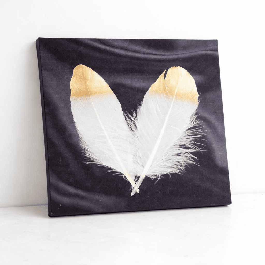 Completează decorul casei tale cu un tablou canvas modern, cu design elegant ce evidențiază două pene albe cu accente aurii pe fundal închis. Contrastul vizual puternic și detaliile fine transformă acest tablou într-un element decorativ de impact.