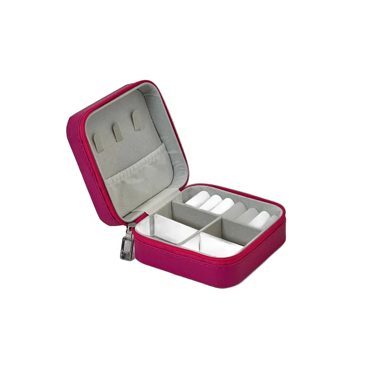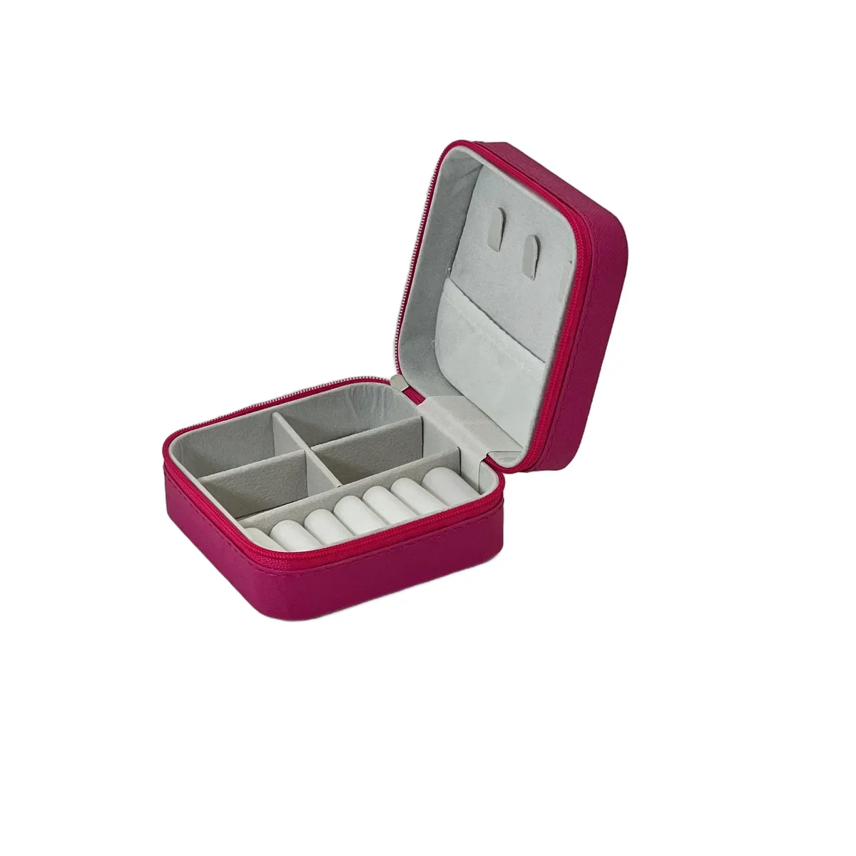 Păstrează-ți bijuteriile organizate și în siguranță oriunde mergi cu această cutie de bijuterii de voiaj, elegantă și compactă. Cu dimensiuni reduse de aproximativ 10 x 10 cm și închidere cu fermoar, cutia este ideală pentru depozitarea inelelor, cerceilor, lanțurilor sau brățărilor în deplasări sau chiar acasă.