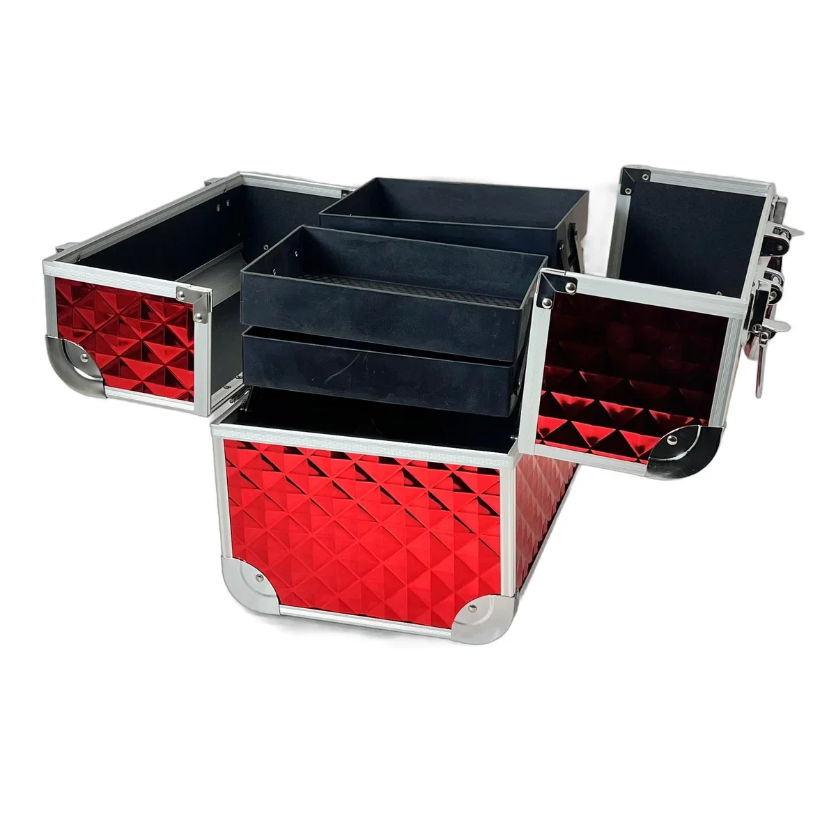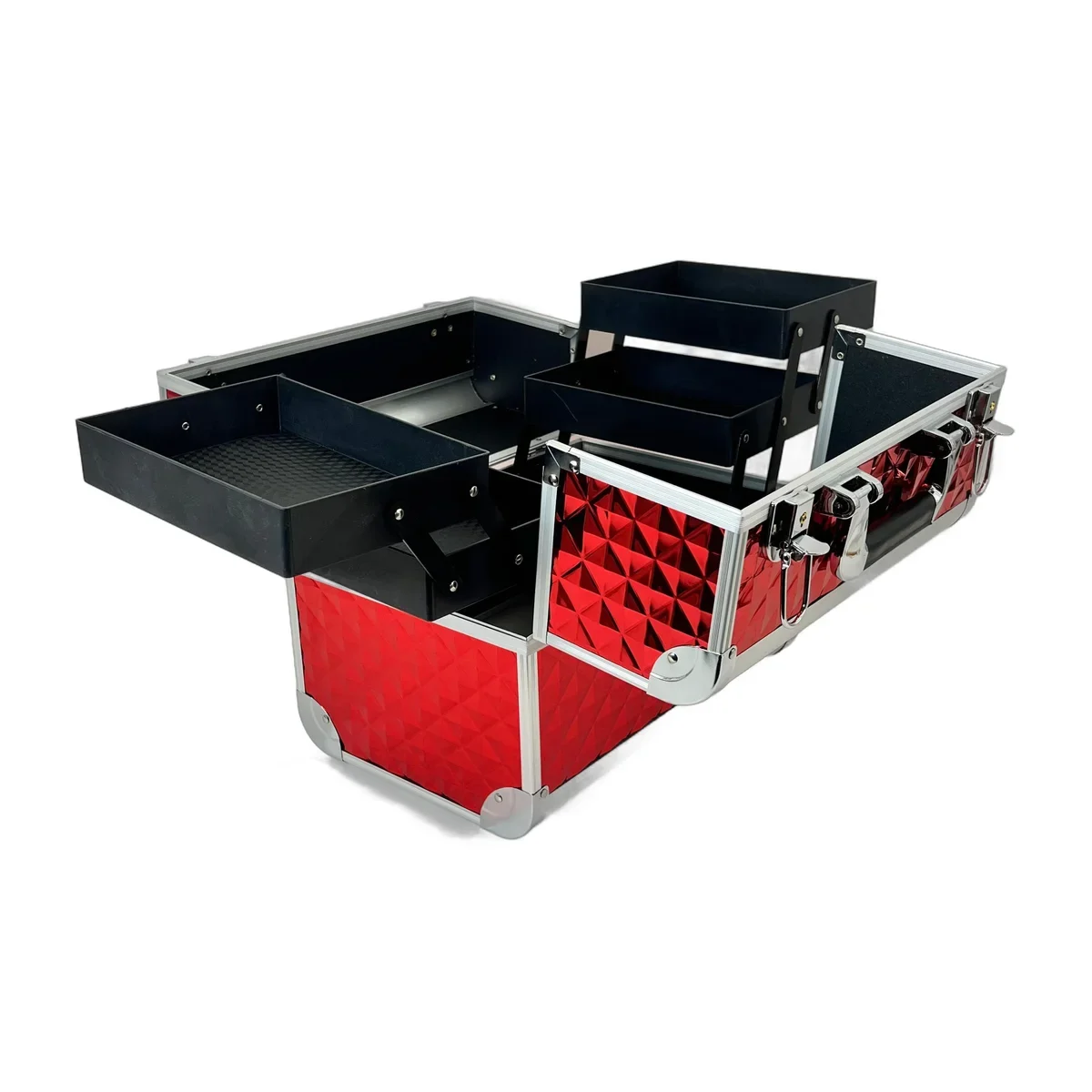 Transformă rutina ta de machiaj într-o experiență organizată și eficientă cu această cutie profesională de machiaj, creată pentru pasionați, stiliști și make-up artiști. Cu un design elegant în nuanțe de negru, roșu și alb și o structură rezistentă din aluminiu, această trusă este ideală pentru depozitarea și transportul produselor cosmetice în siguranță.