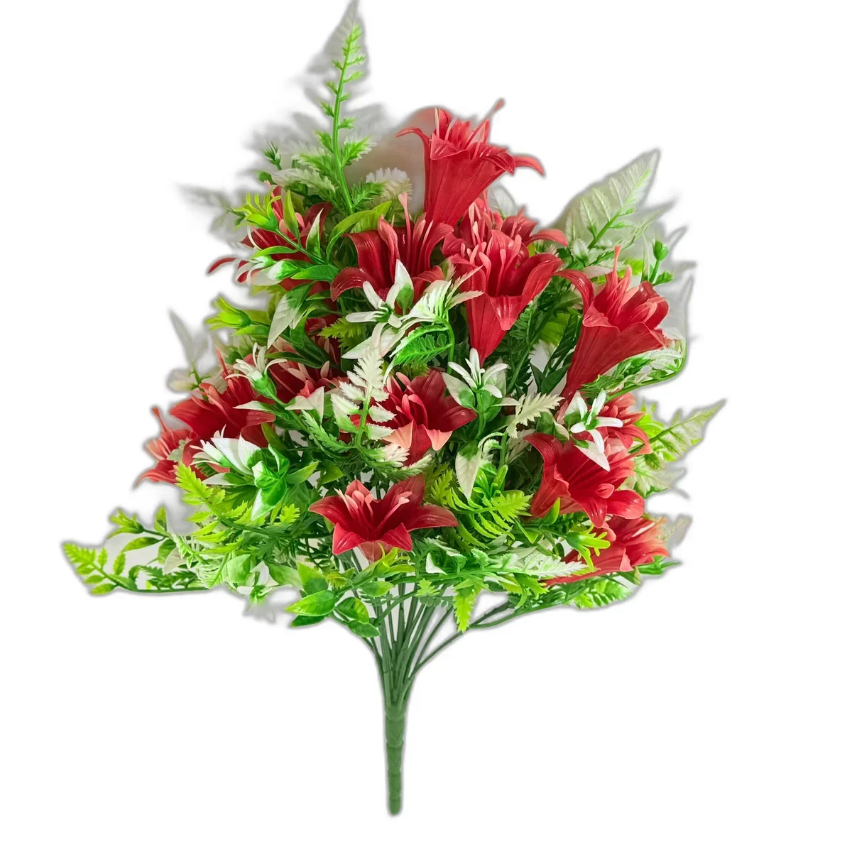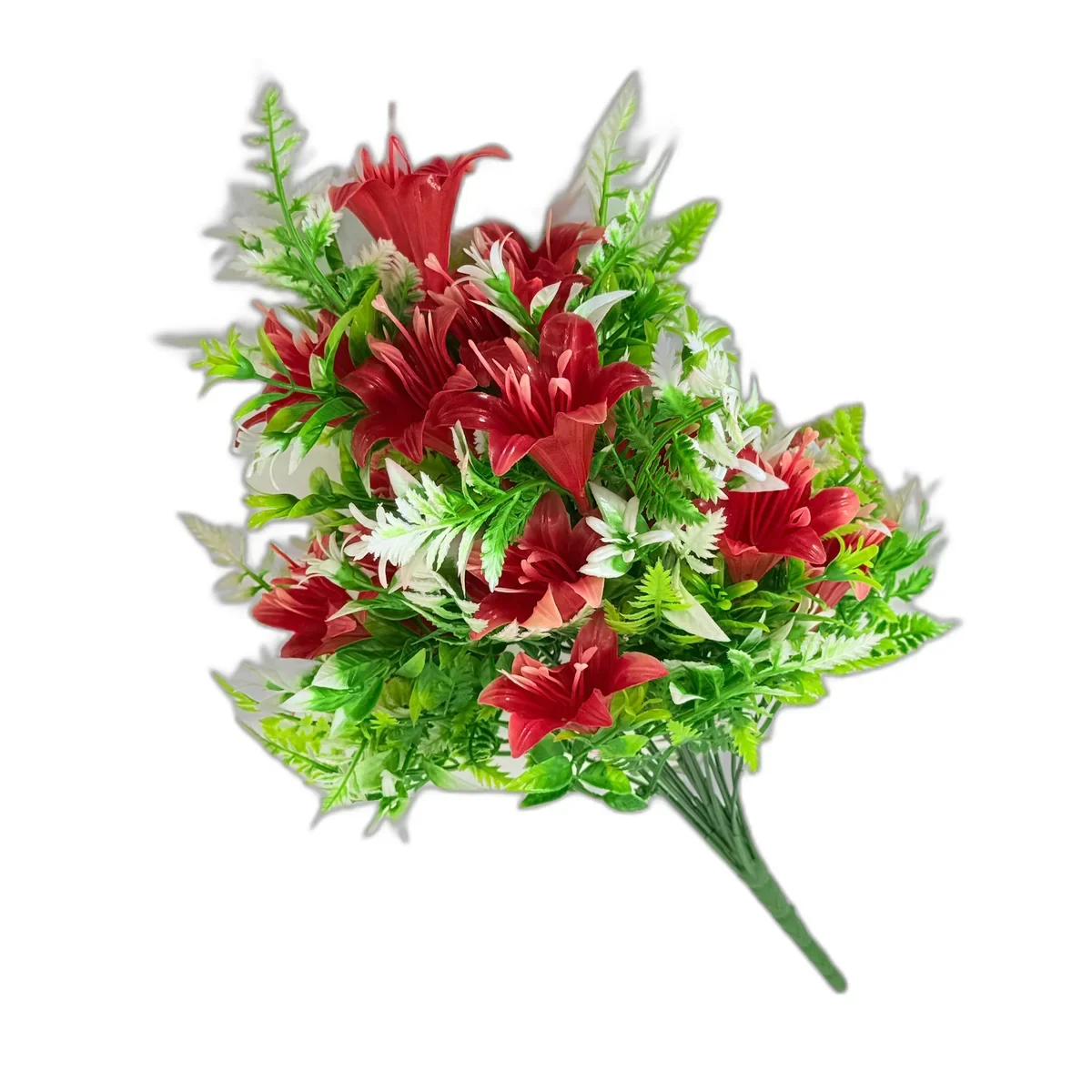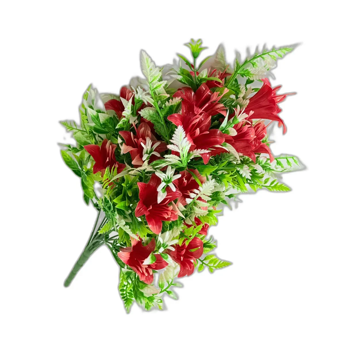 Comanda acum buchetul de flori artificiale rosii si verzi si ofera un decor elegant, durabil si fara grija intretinerii!
