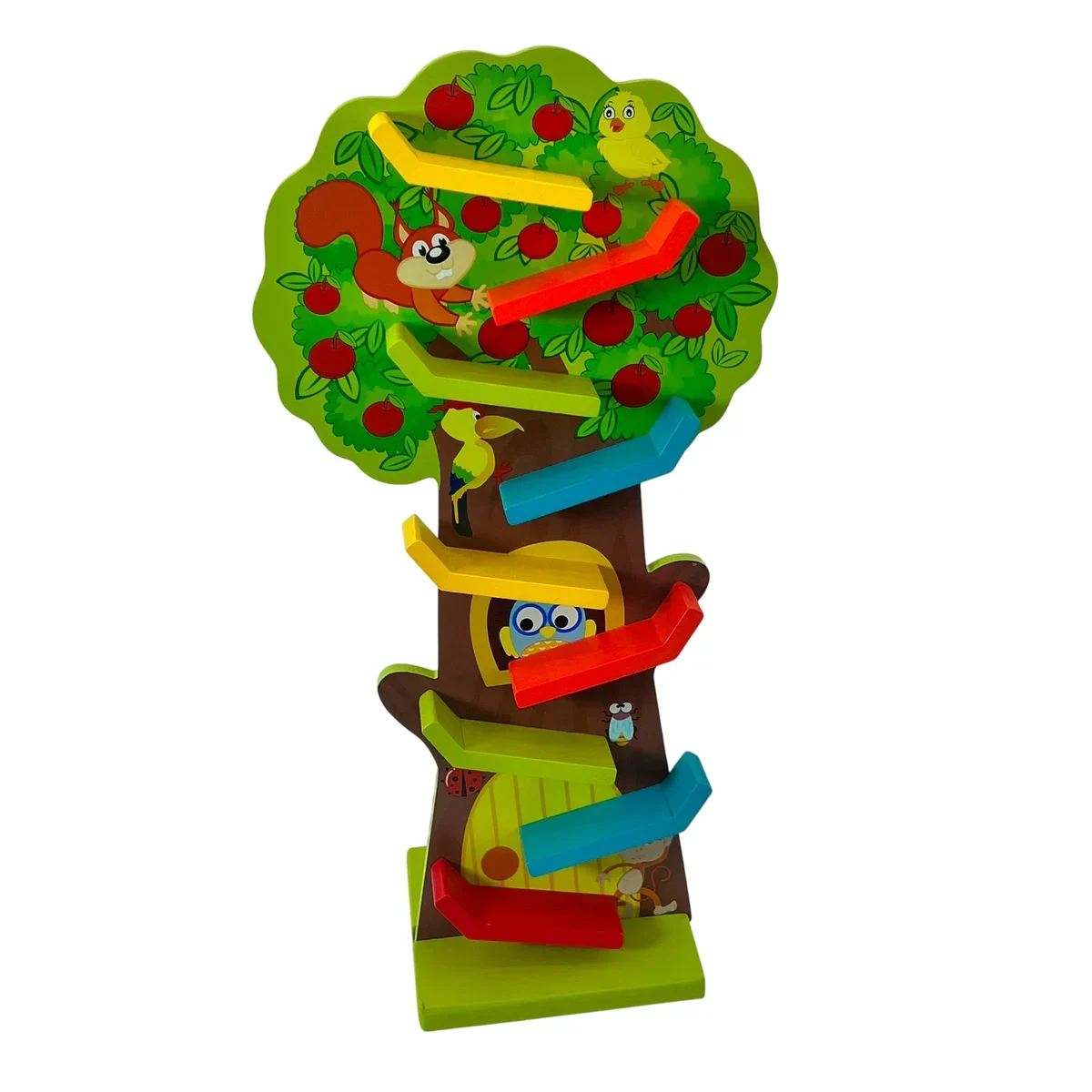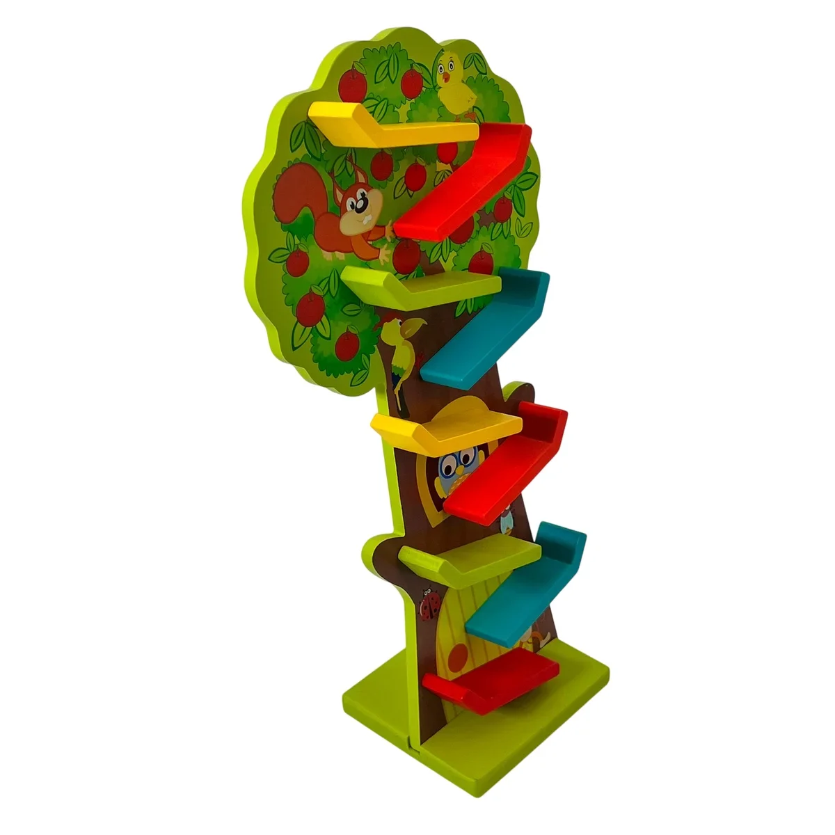 Comandă acum jucăria din lemn tip pom cu rampă de bile și oferă copilului tău o activitate educativă și distractivă!