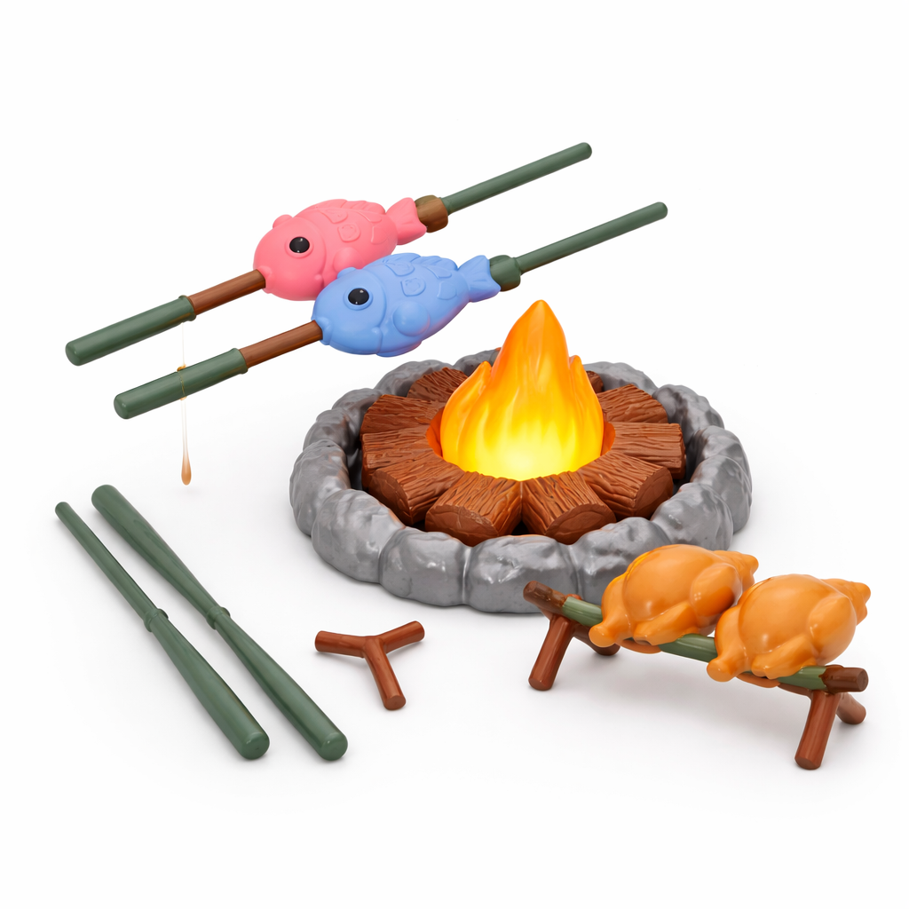 Ideal pentru joacă individuală sau în grup, acest set oferă o experiență distractivă și captivantă inspirată din activitățile de camping.