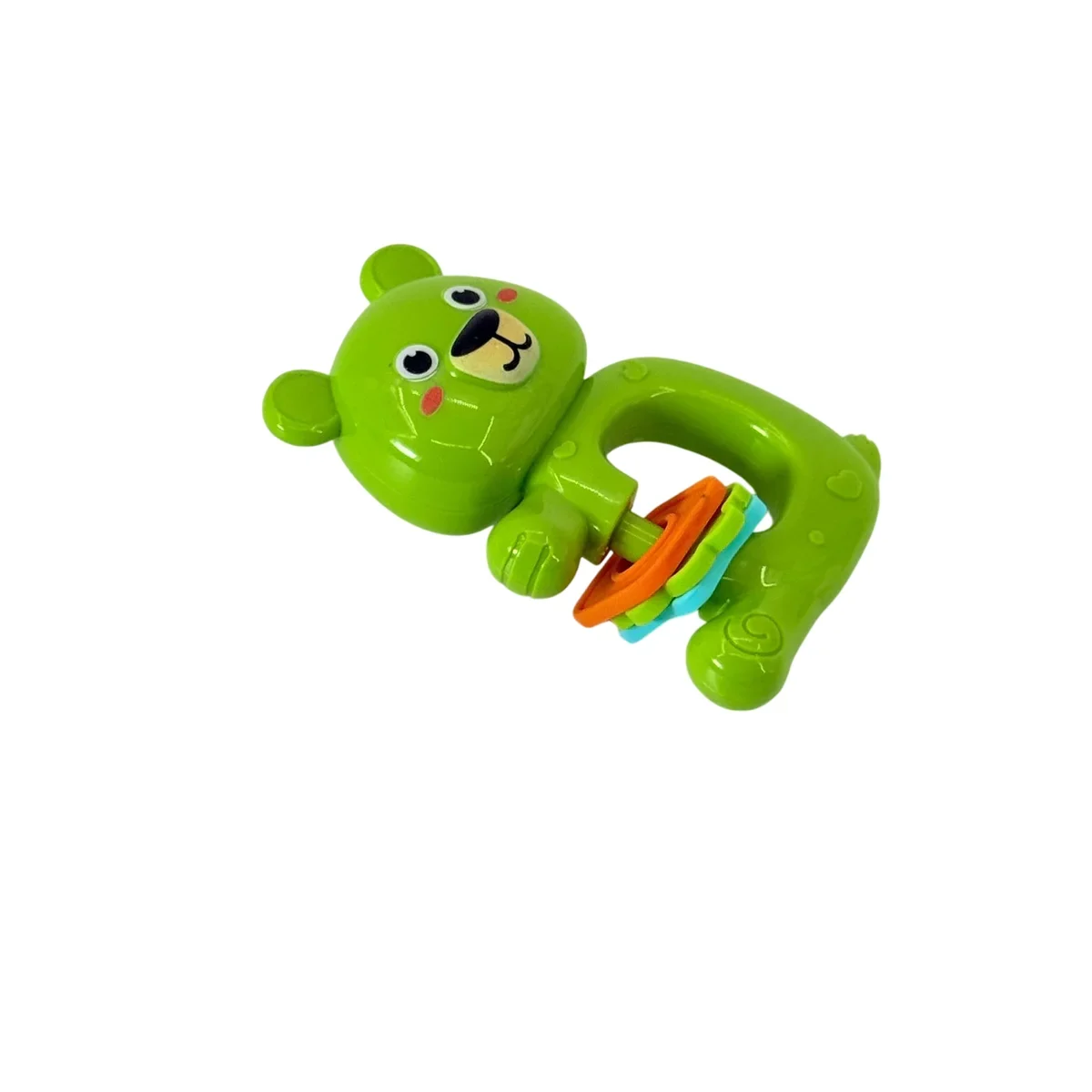 Înveselește joaca bebelușului tău cu jucăria zornăitoare în formă de ursuleț verde. Cu un design prietenos și ergonomic, această jucărie este ușor de prins de mâinile mici și stimulează simțurile prin culori vii și sunete atractive.
